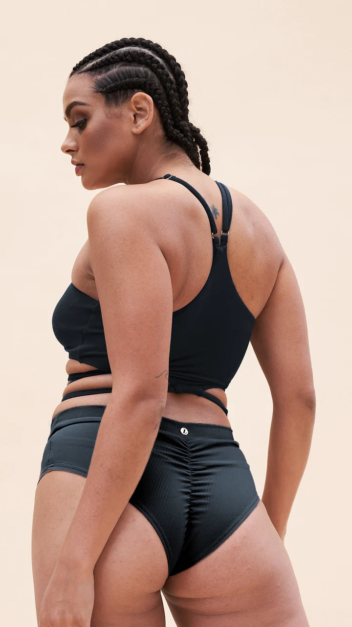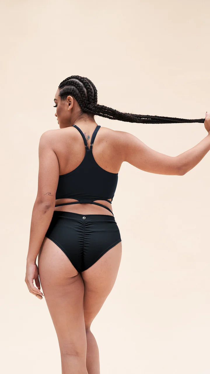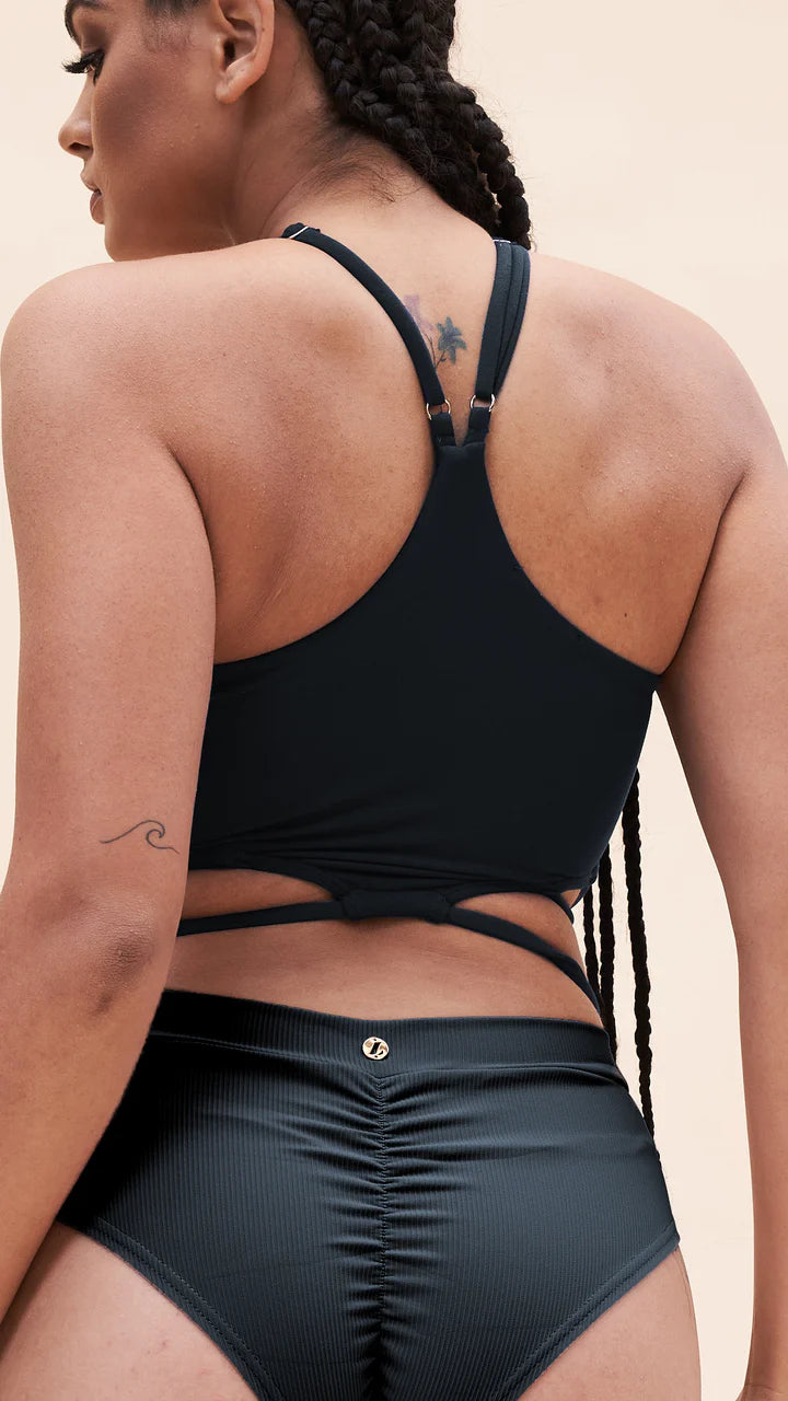 Obtenez un chic de plage avec ce haut de bain à col dos nu, doté d’un détail enveloppant flatteur, de bretelles réglables et d’un rembourrage amovible pour un ajustement personnalisé et confortable. Associez-le parfaitement à n’importe lequel de vos bas Luna noirs préférés, tous fabriqués à partir de leur tissu recyclé doux comme du beurre pour un choix durable et élégant.