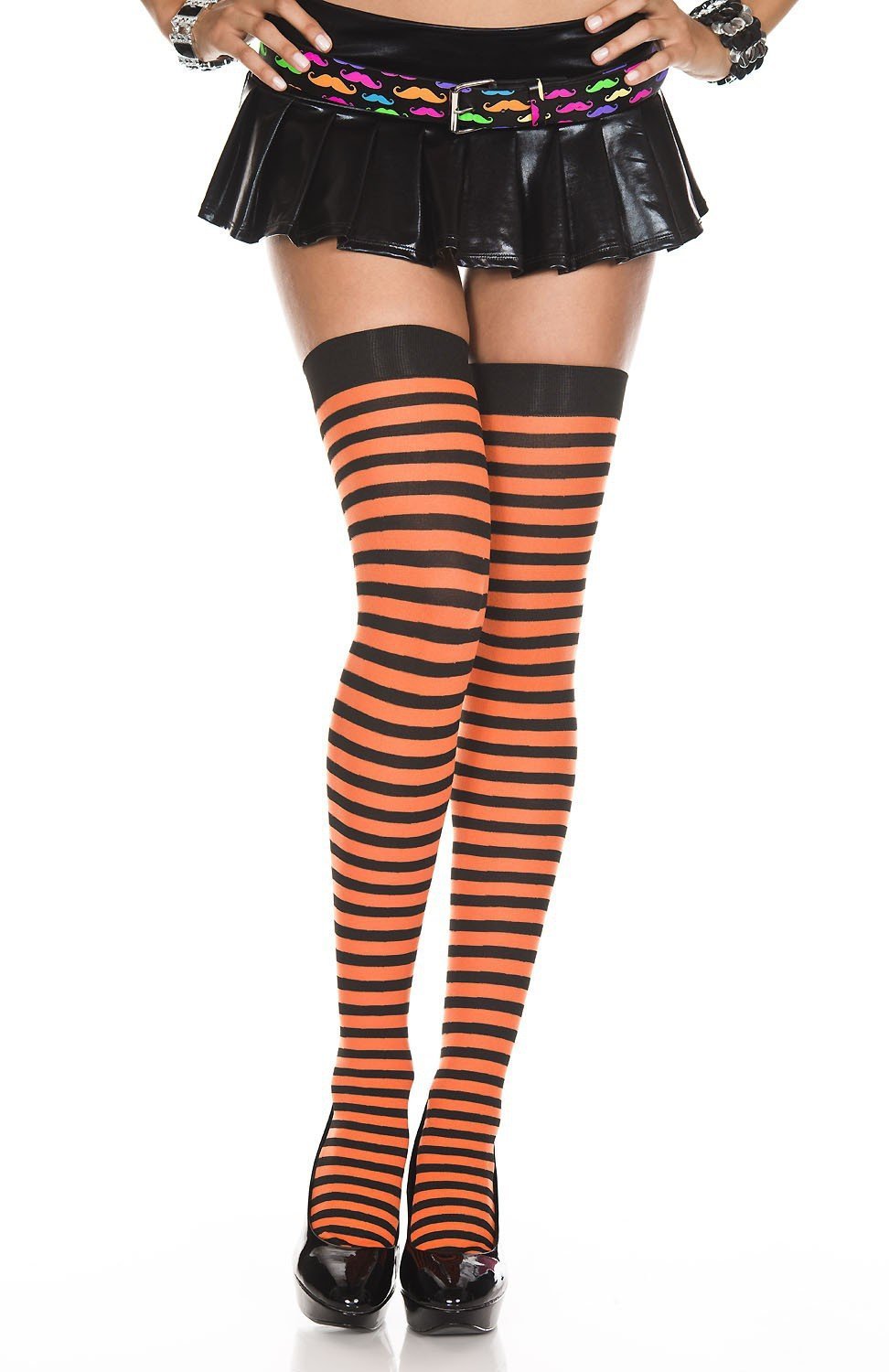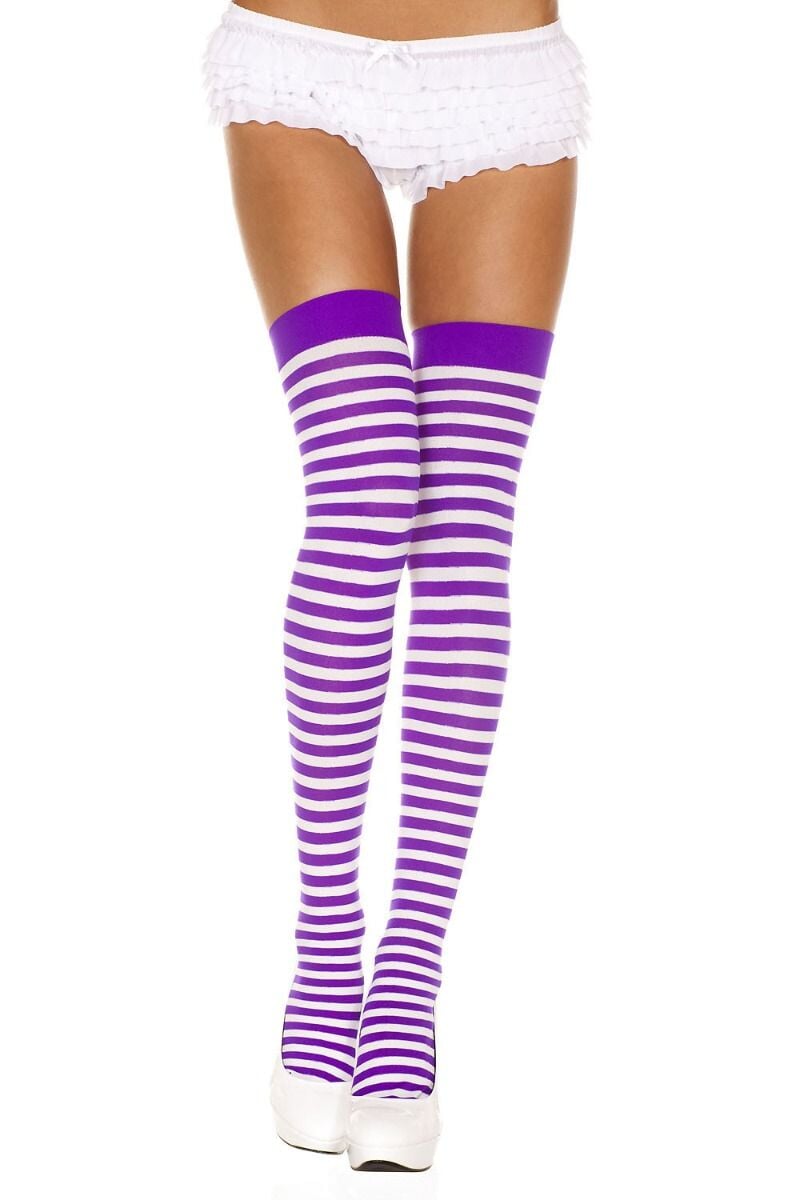 Opaque Striped Thigh Hi