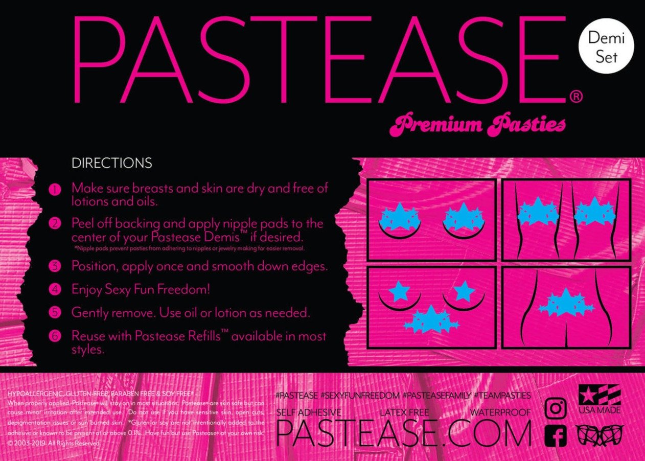 Un ornement féminin et ludique pour les seins, les Pastease® Demis peuvent être portés sur des seins gros ou petits pour une couverture supplémentaire et sont bien plus qu’un simple couvre-mamelon!