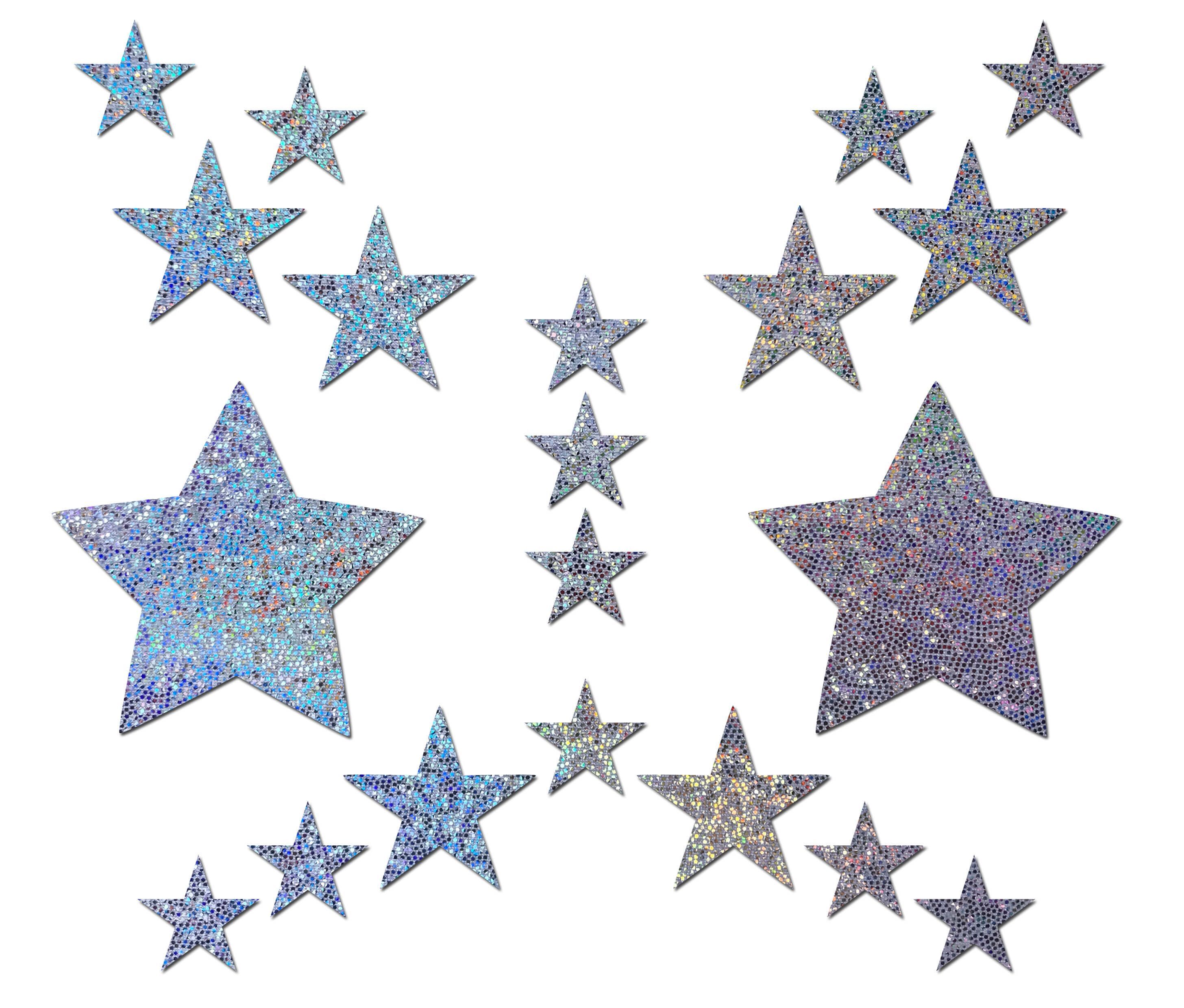 Pastease Set: Silver Glitter Star with 6 Mini Stars and 10 Baby Stars Nipple & Body Pasties