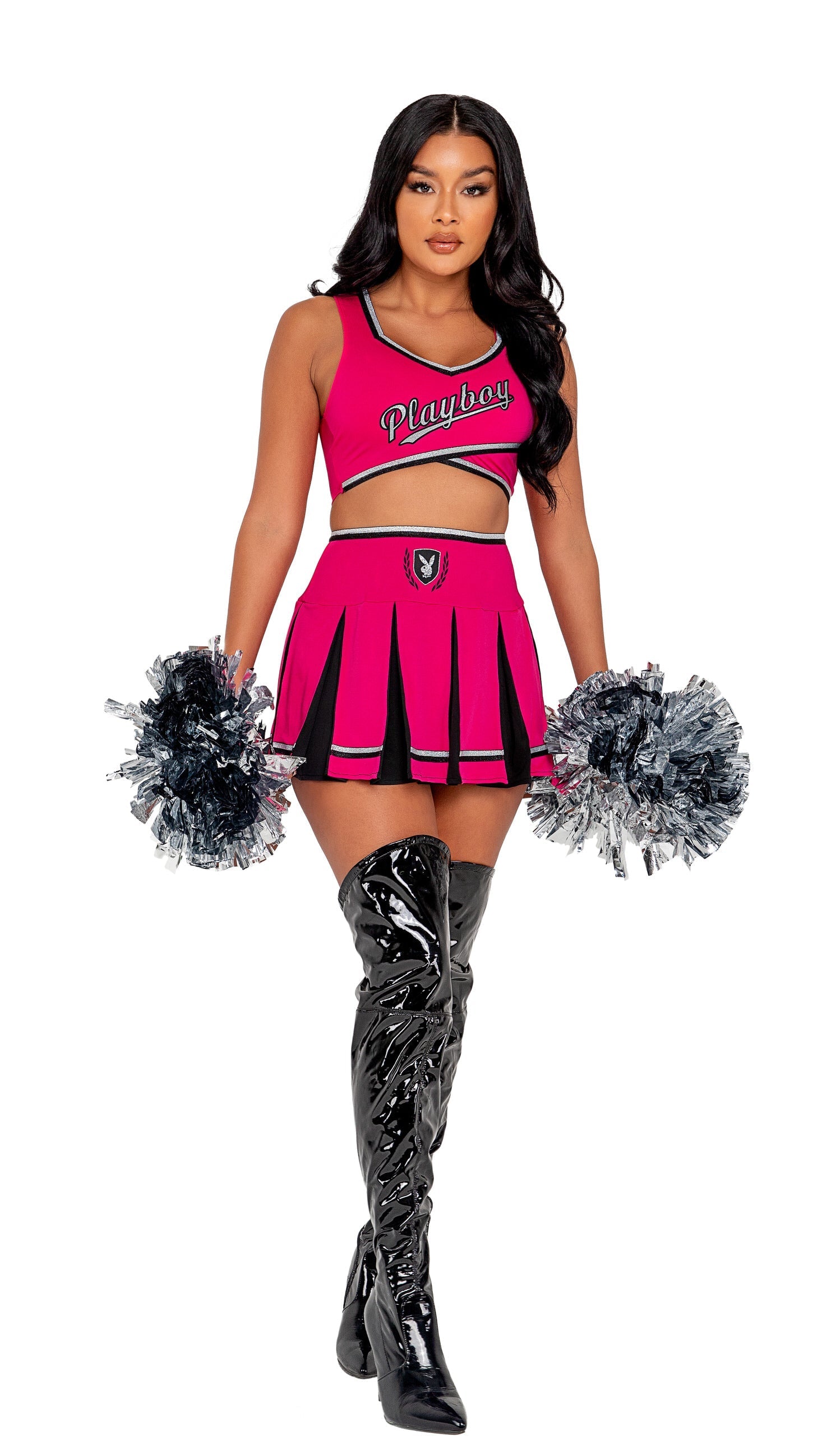 Comprend un haut avec imprimé Playboy, une jupe et des pompons