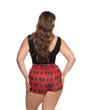Jersey knit cropped tank•Screen print bunny heart cameo print•Cozy fleece shorts•Drawstring waist