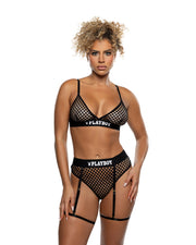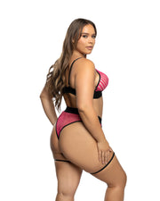 Raschel lace•Plunge neckline•Logo print elastic•Cotton Gusset