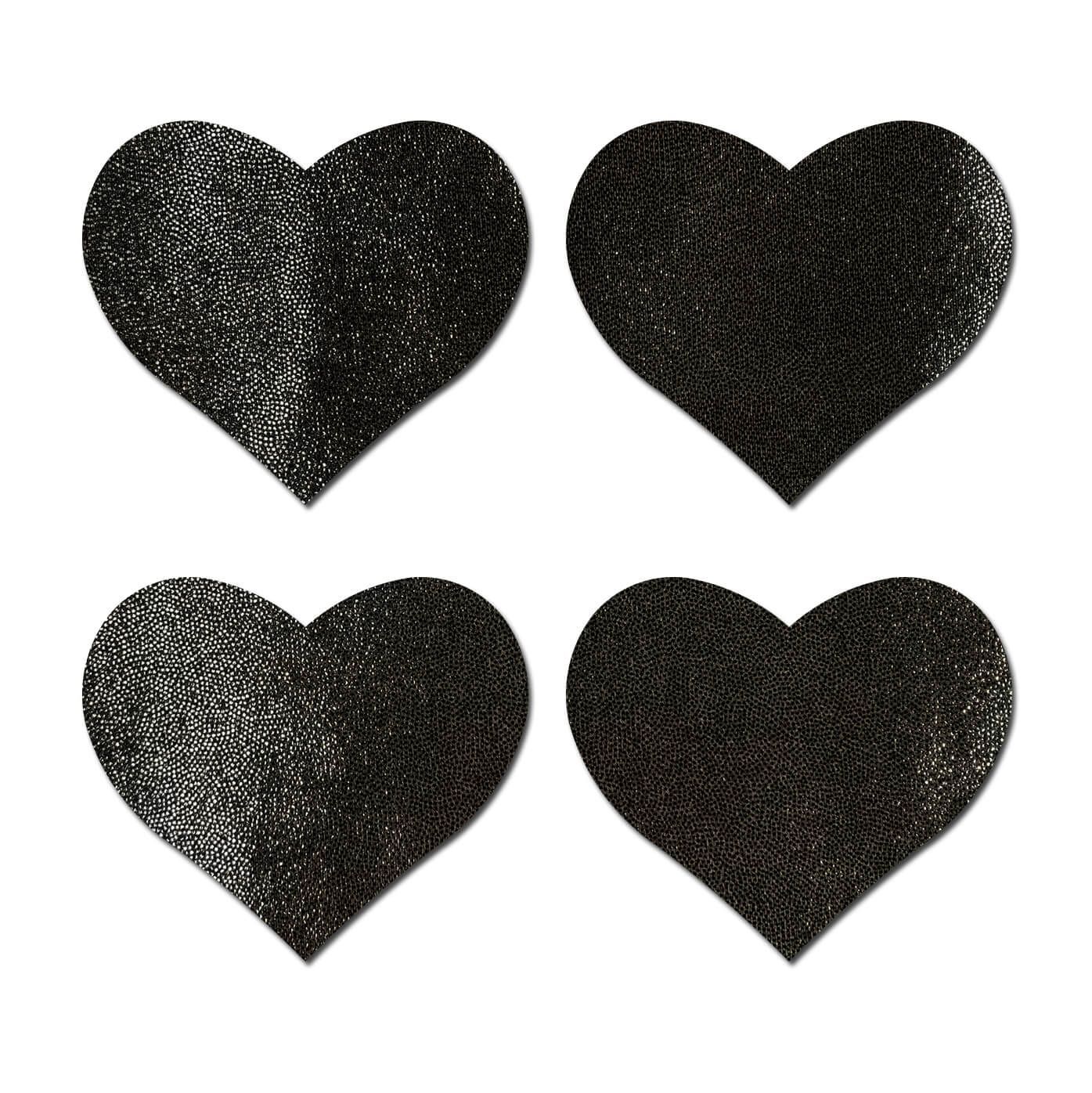 Petites: Two-Pair Small Liquid Black Hearts Nipple Pasties