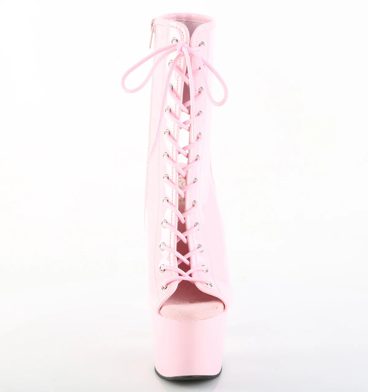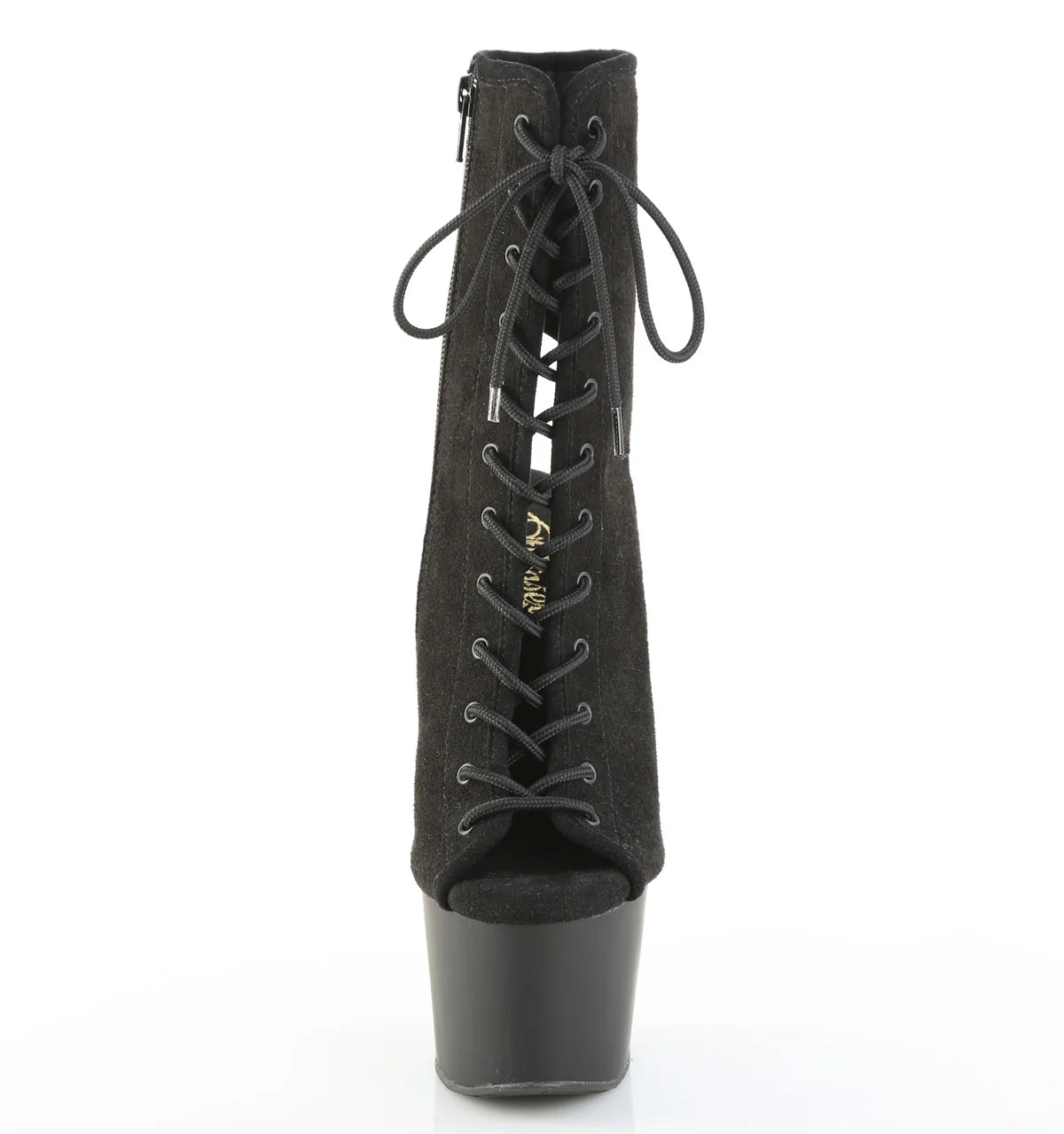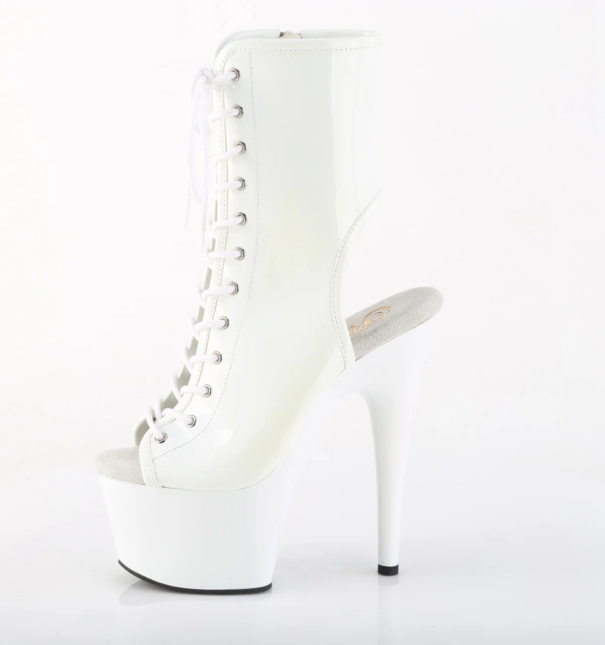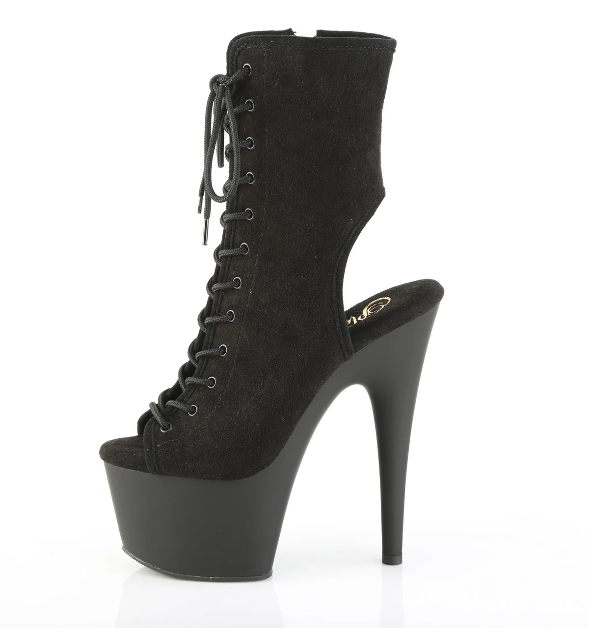 7 » (17 cm) talon, 2 3/4 » (7 cm) plateforme ouverte à orteil/talon à lacets, fermeture éclair latérale