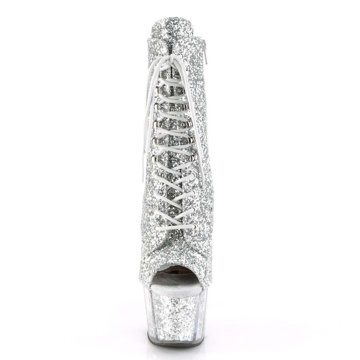 Mettez un peu d’étincelle dans votre démarche avec ces superbes bottines à talons de 7 » (178 mm), 2 3/4 » (70 mm) remplies de paillettes, à lacets à lacets, avec fermeture éclair intérieure complète.