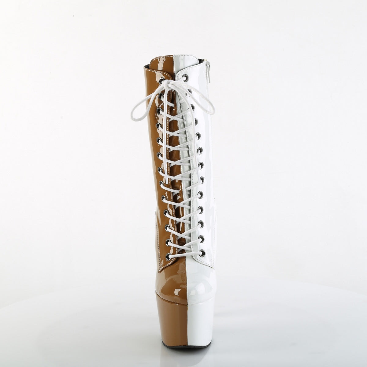 Une pièce vraiment stimulante d’un design magnifique. Cette botte à talon de 7 po (178 mm), plateforme de 2 3/4 po (70 mm) à lacets à l’avant avec fond plateforme entièrement enveloppé et fermeture à glissière latérale intérieure.