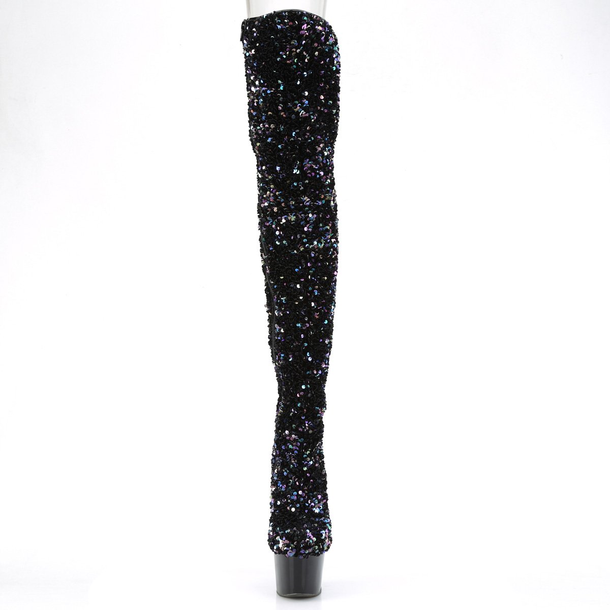 Brillez toute la nuit avec ces bottes à talons de 7 » (178 mm), 2 3/4 » (70 mm) à talons extensibles et 2 3/4 » (70 mm), avec un corps à paillettes multiples et fermeture éclair intérieure.