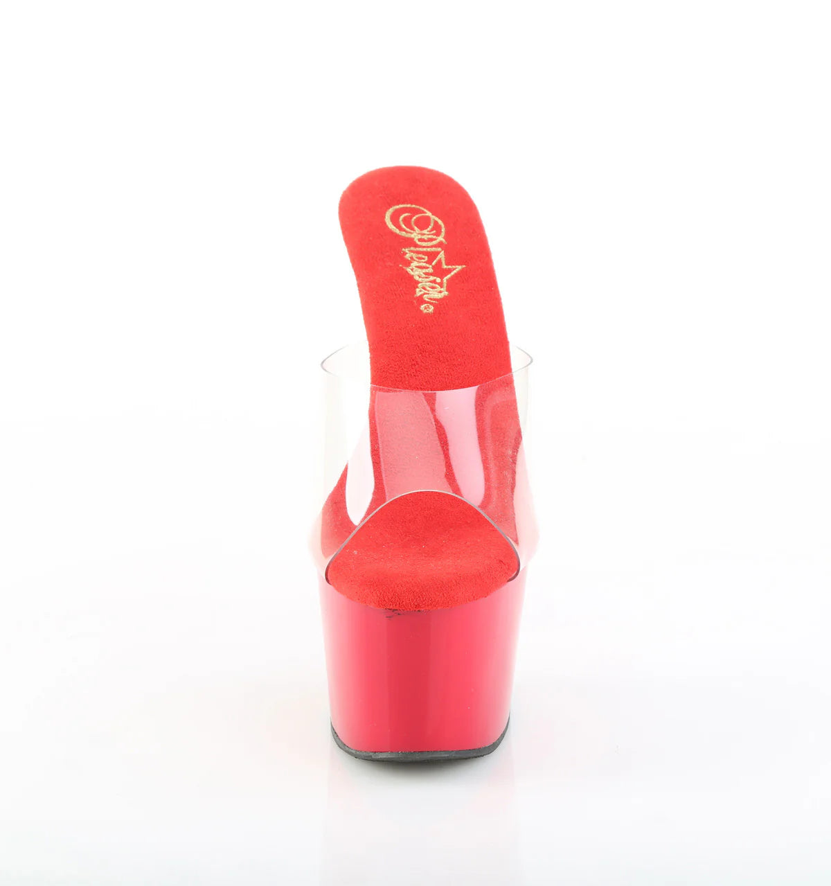 Superbe talon de 7 » (17,8 cm), coulisse-plateforme de 2 3/4 » (7 cm) avec fond chromé.
