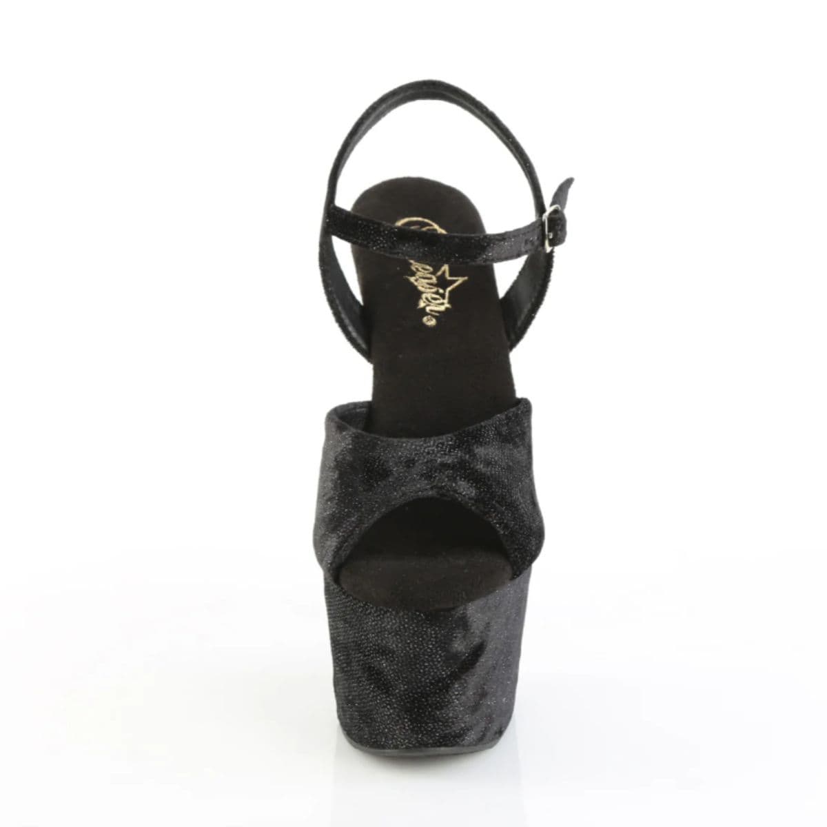 Brillez fort et tenez-vous droit dans ces sandales à bretelles à la cheville éblouissantes avec un talon de 7 » (178 mm) et une plateforme de 2 3/4 » (70 mm). Dotés d’une tige en tissu scintillant et d’une plateforme assortie entièrement enveloppée, ils sont conçus pour voler la vedette à chaque pas!