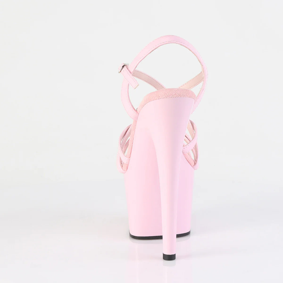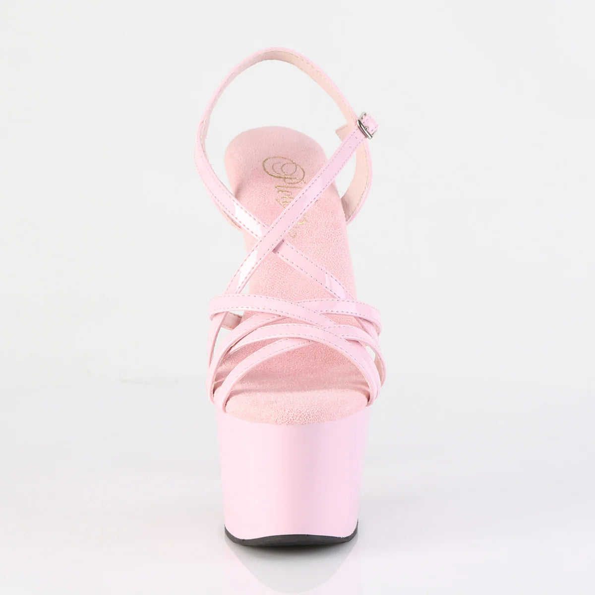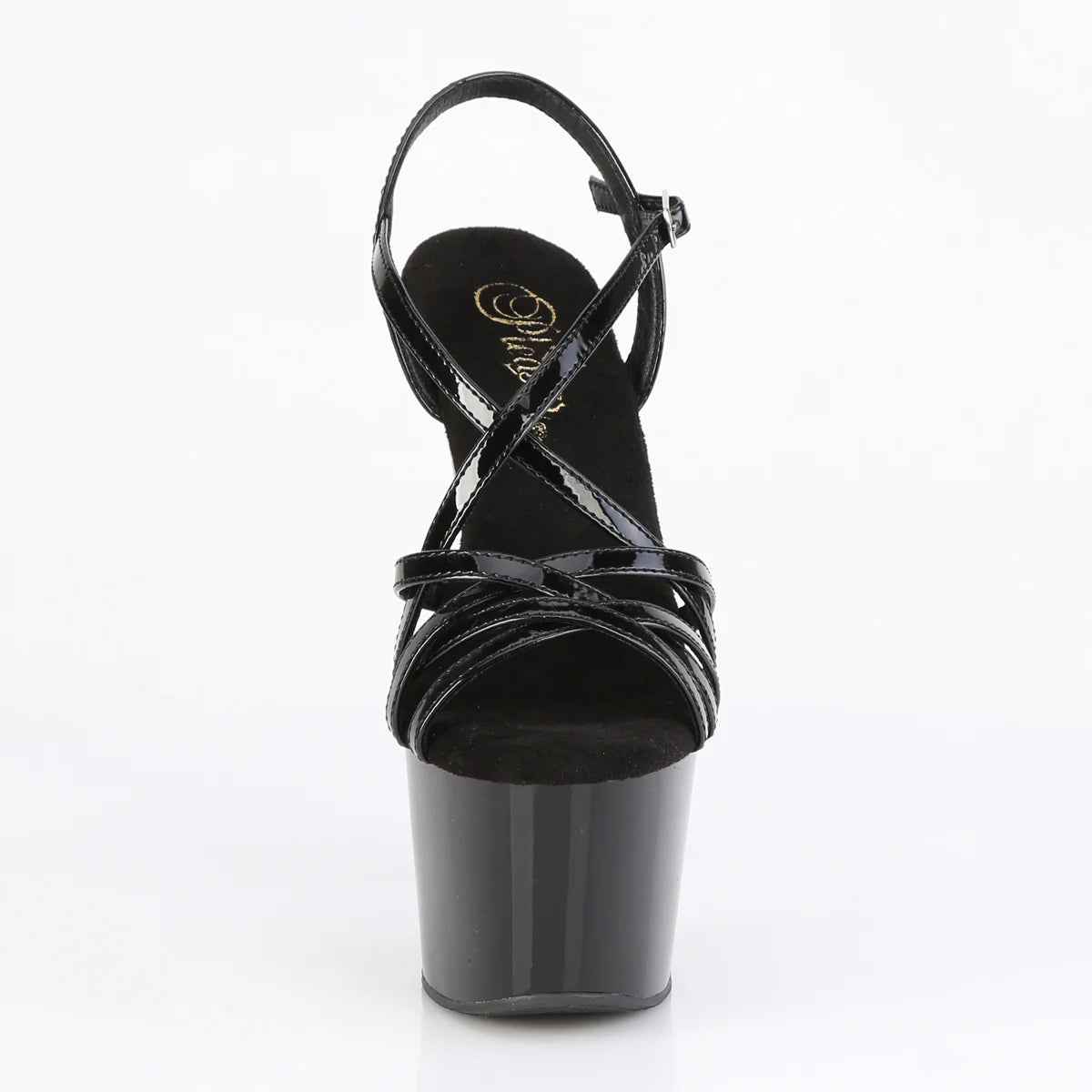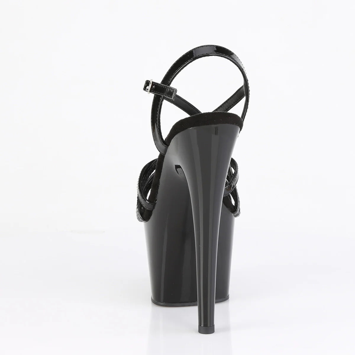Magnifique sandale à talon de 7 » (178 mm), 2 3/4 » (70 mm) à plateforme, avec des bretelles croisées qui se chevauchent.