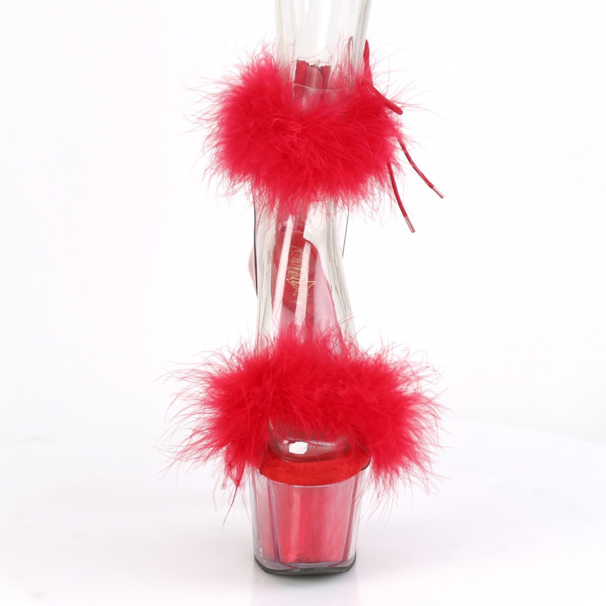 Sandale séduisante et amusante de 7 po (178 m) au talon, à la cheville de 2 3/4 po (70 mm) avec fourrure de Marabou sur l’empeigne et à l’intérieur du bas de la plateforme avec laçage latéral et fermeture à glissière à l’arrière.