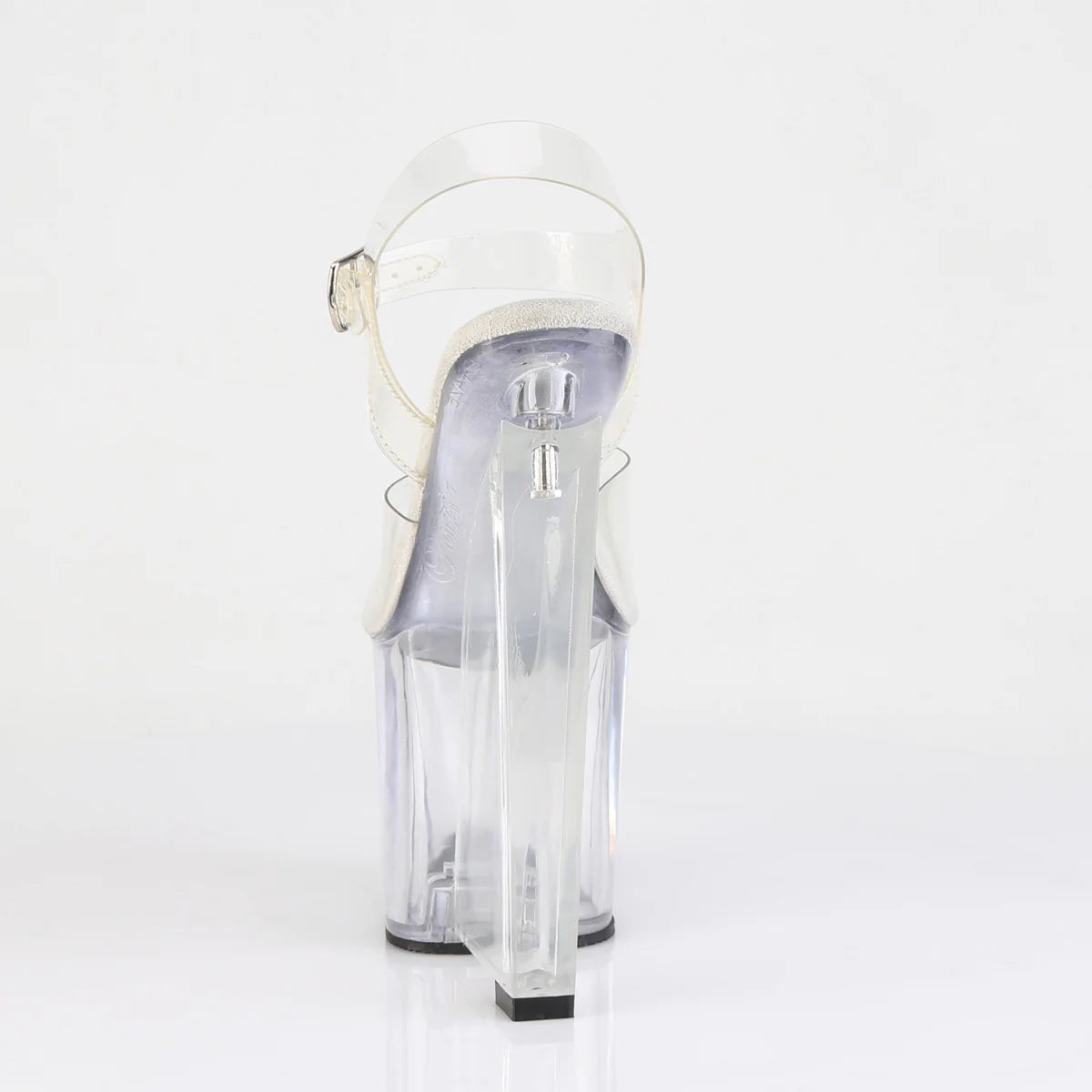 Cette sandale possède un talon compensé de 8 » et une plateforme de 3 1/2 » pour un look audacieux et surélevé. La sangle à la cheville ajoute un soutien supplémentaire et une touche de style pour compléter le design.