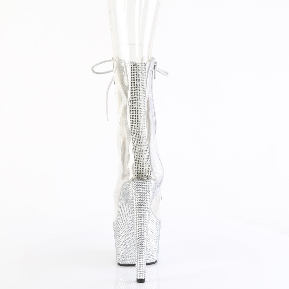 Ces superbes bottines dotées d’un talon de 7 po et d’un bout ouvert à plateforme de 2 3/4 po. Ornés d’ornements de strass le long des panneaux avant et arrière et couvrant tout le bas de la plateforme, ils dégagent le glamour et la brillance. La fermeture à glissière latérale intérieure assure un port facile, ce qui en fait un choix parfait pour ajouter une touche d’éclat à n’importe quelle tenue.