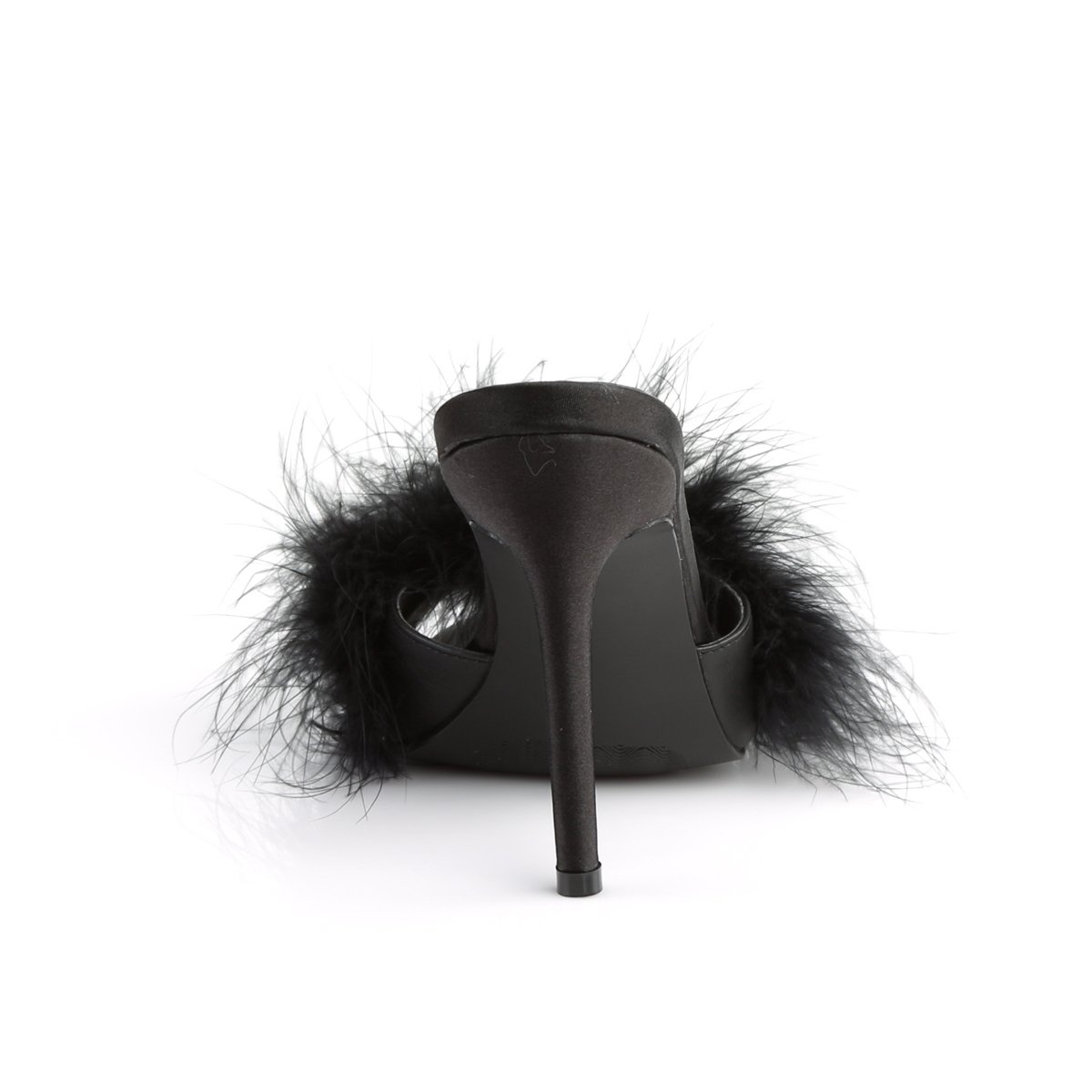 Détendez-vous avec style avec ce classique Pleaser Pantoufle Marabou à talon de 4" (10 cm). Tige textile dans un style sandale habillée avec un bout rond et ouvert. Détails doux de plumes au niveau du vampire. Doublure lisse, semelle intérieure amortie. Semelle extérieure d’adhérence.