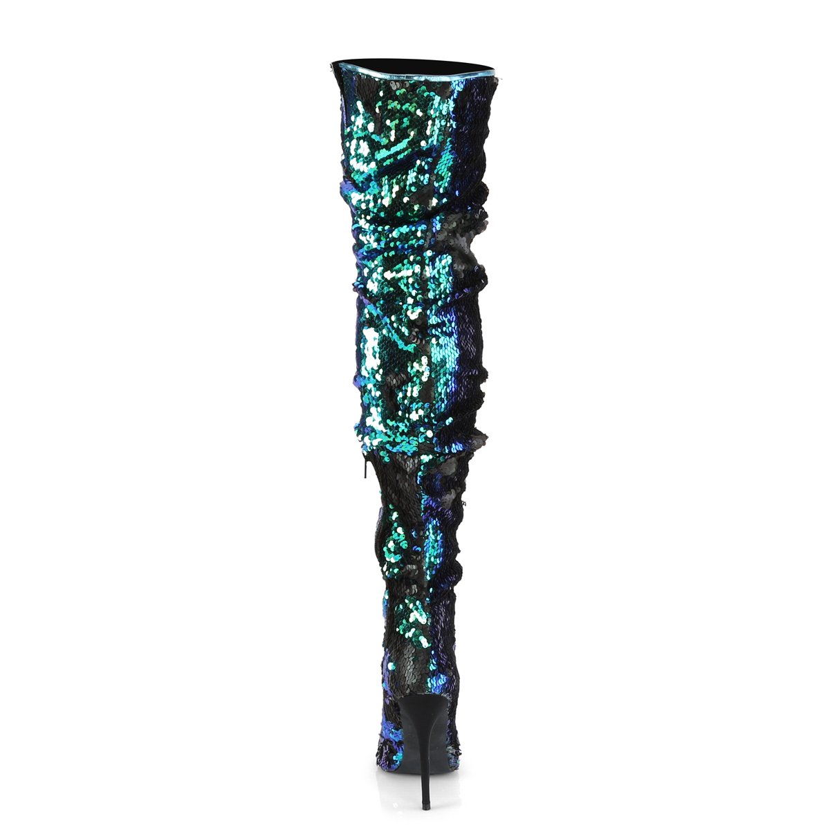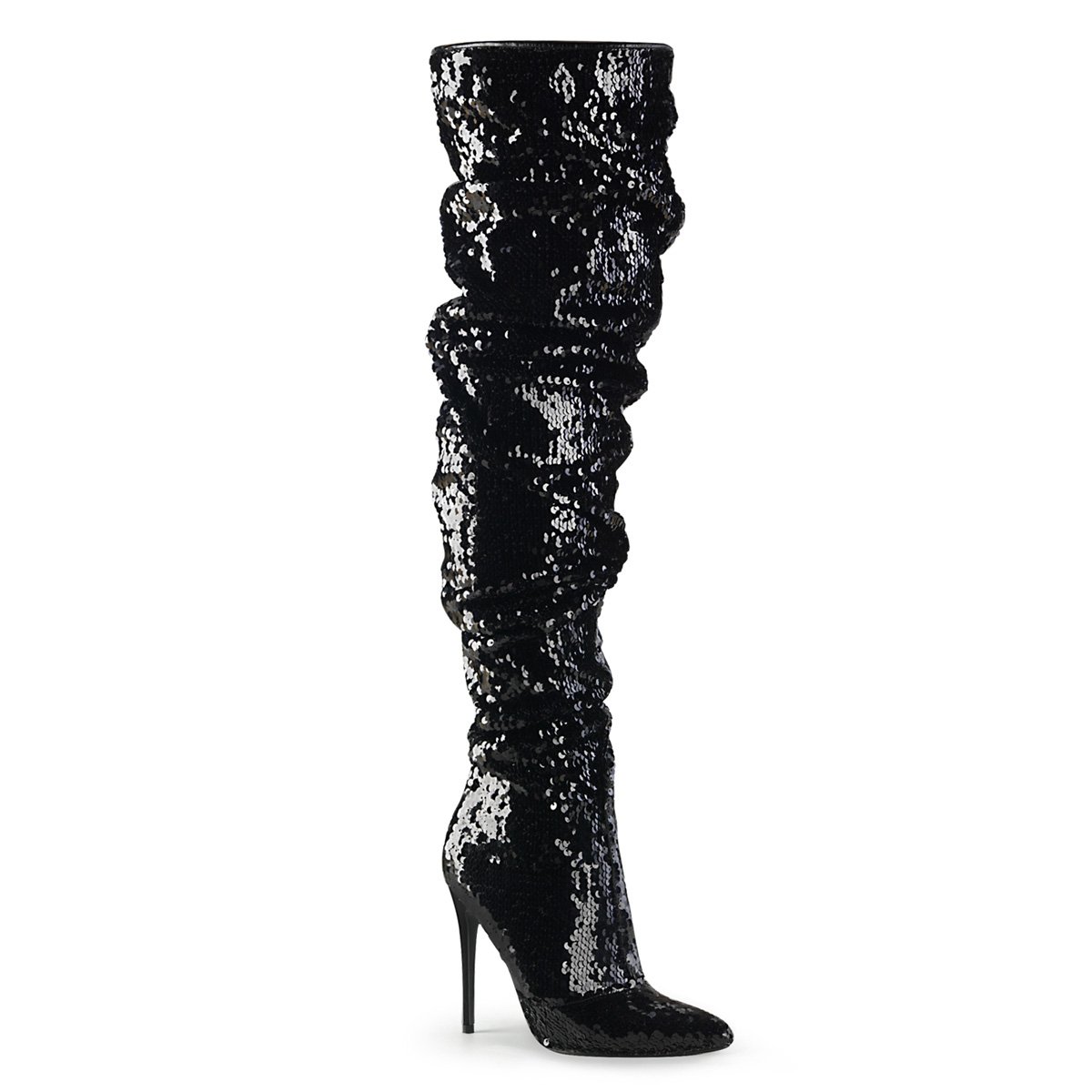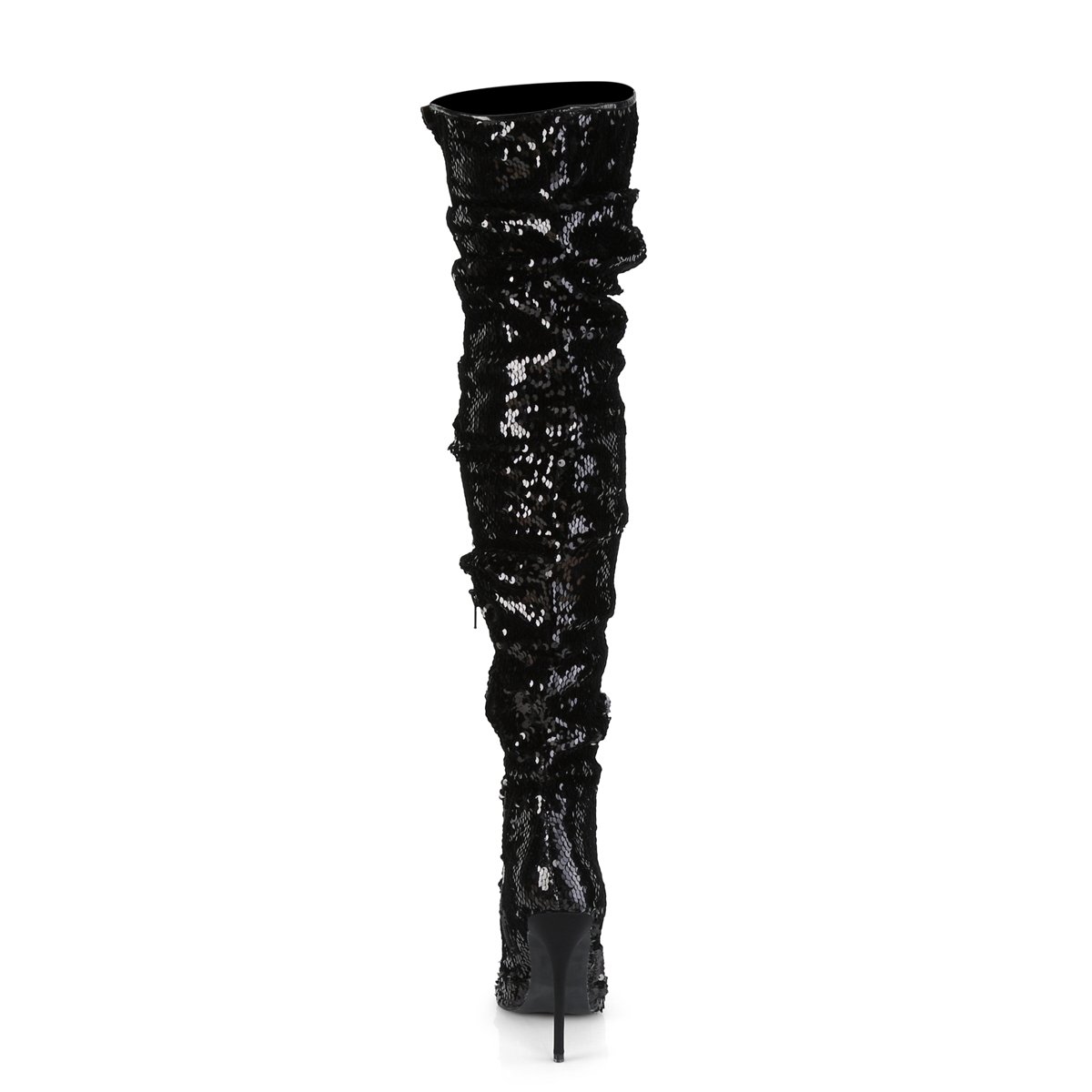 Botte funky de 5 po (116 mm) à talon au-dessus du genou avec corps froncé à paillettes amples, fermeture à glissière intérieure 1/3.