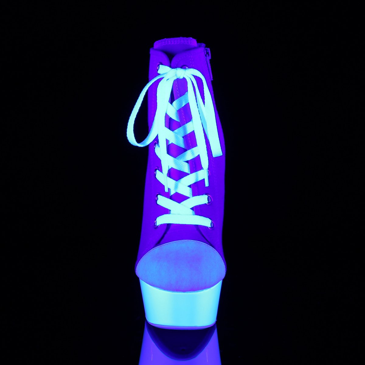 Ayez l’air soigné avec une ambiance amusante et athlétique dans cette espadrille en toile à talon de 6 po (152 mm) et à lacets plateformes de 1 3/4 po (45 mm) à l’avant avec un bas plateforme réactif à la lumière noire. Ce style comprend une fermeture à glissière intérieure complète pour un port facile et un emplacement.