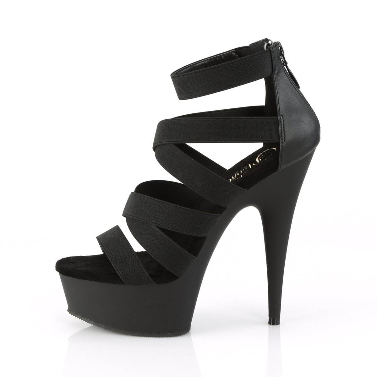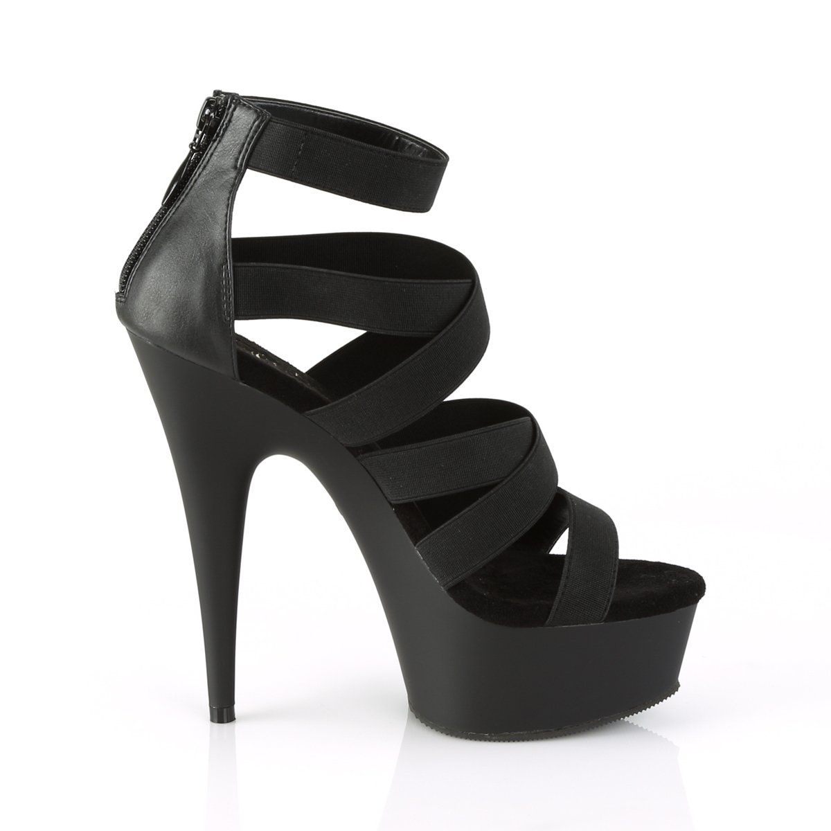 Talon élégant et sexy de 6 » (152 mm), sandale à plateforme double croisée de 1 3/4 » (45 mm) avec des bretelles élastiques, fermeture éclair arrière.