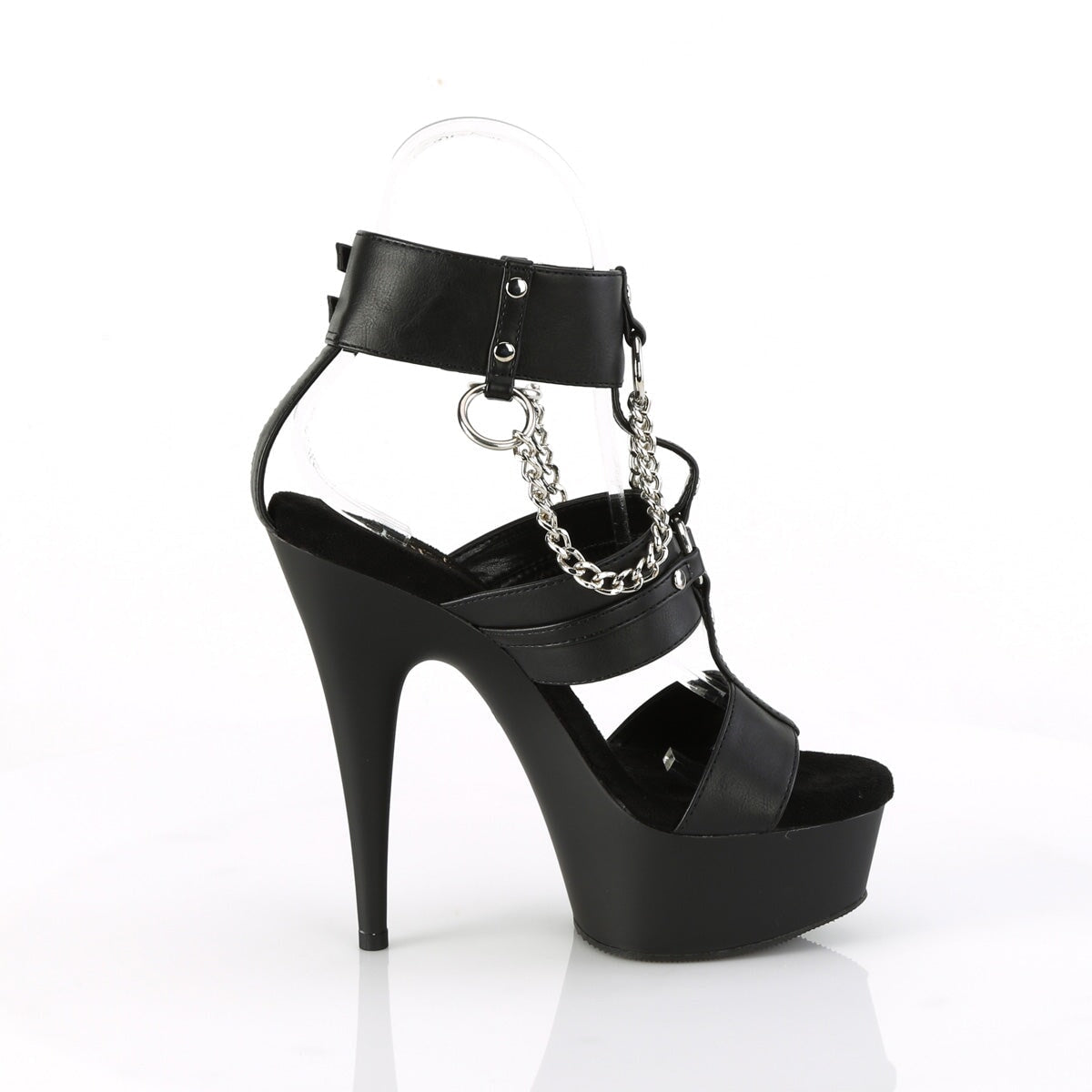 Soyez sexy et cool avec cette paire de sandales, dotée d’une sandale à talons de 6 » (152 mm), à triple bande (45 mm), à plateforme triple bande (1 3/4 ») (45 mm), à double boucle à cheville, avec joints toriques en métal, des crampons et des chaînes.
