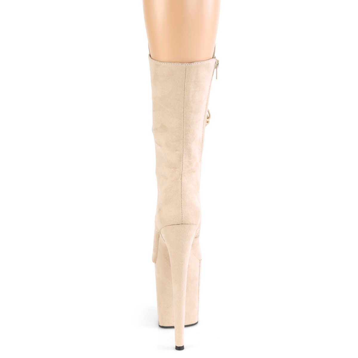 Superbe botte à talon de 8 » (200 mm) et à plateforme de 4 » (100 mm) à mi-mollet à plate-forme à l’avant avec un bas plateforme entièrement enveloppé et une fermeture à glissière intérieure complète. Comprend des lacets noirs assortis.