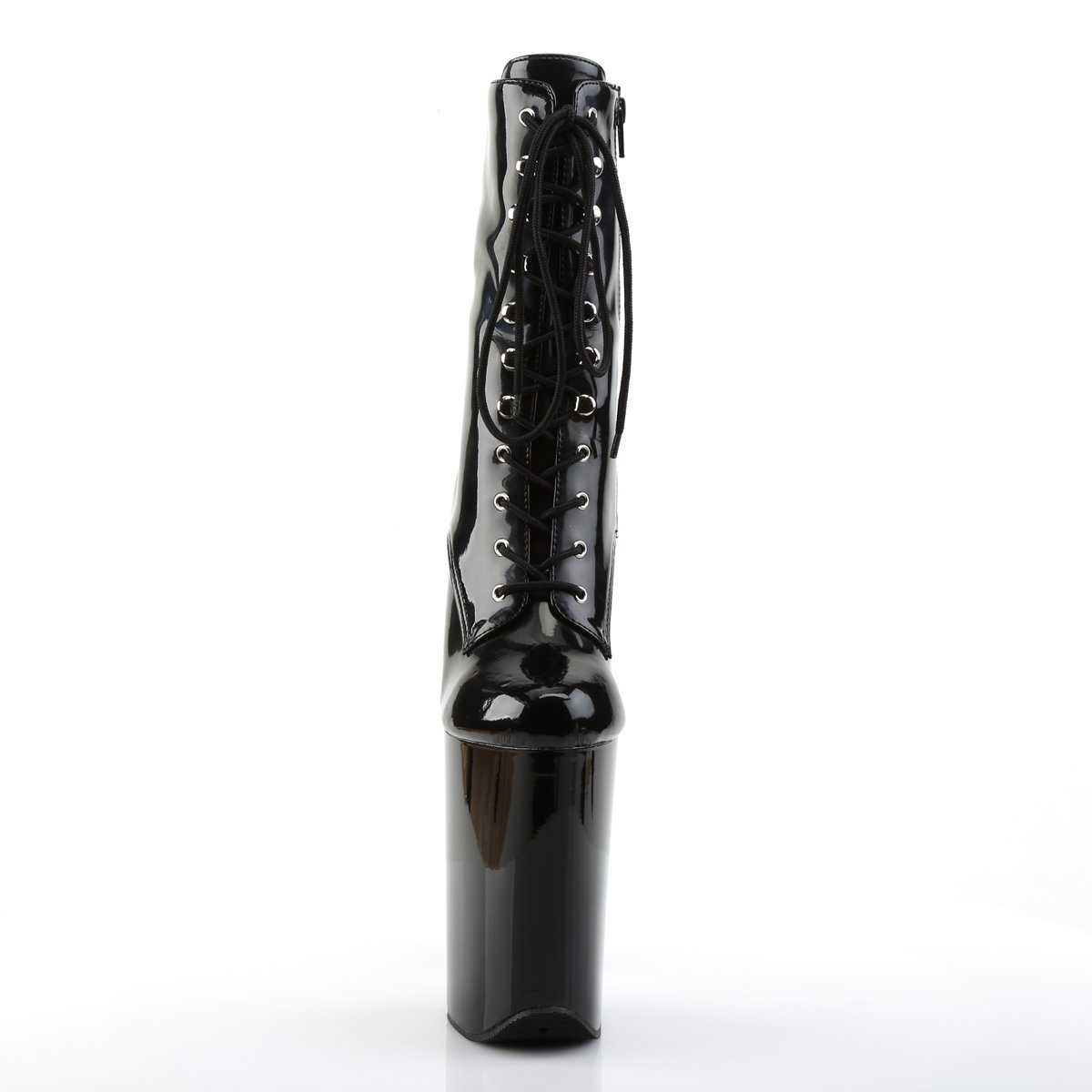 Bottine à lacets à l’avant ultra haute, fermeture à glissière latérale intérieure complète avec bout rond qui ajoute de l’élégance au design, lacets avant pour un ajustement ajustable et talons aiguilles de 9 pouces de haut qui soulèvent le pied et sculptent la jambe pour une apparence époustouflante. La partie avant est équilibrée par une plate-forme assortie pour plus de confort et de stabilité.