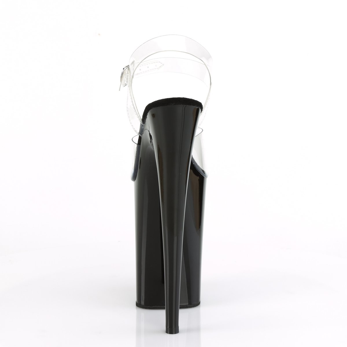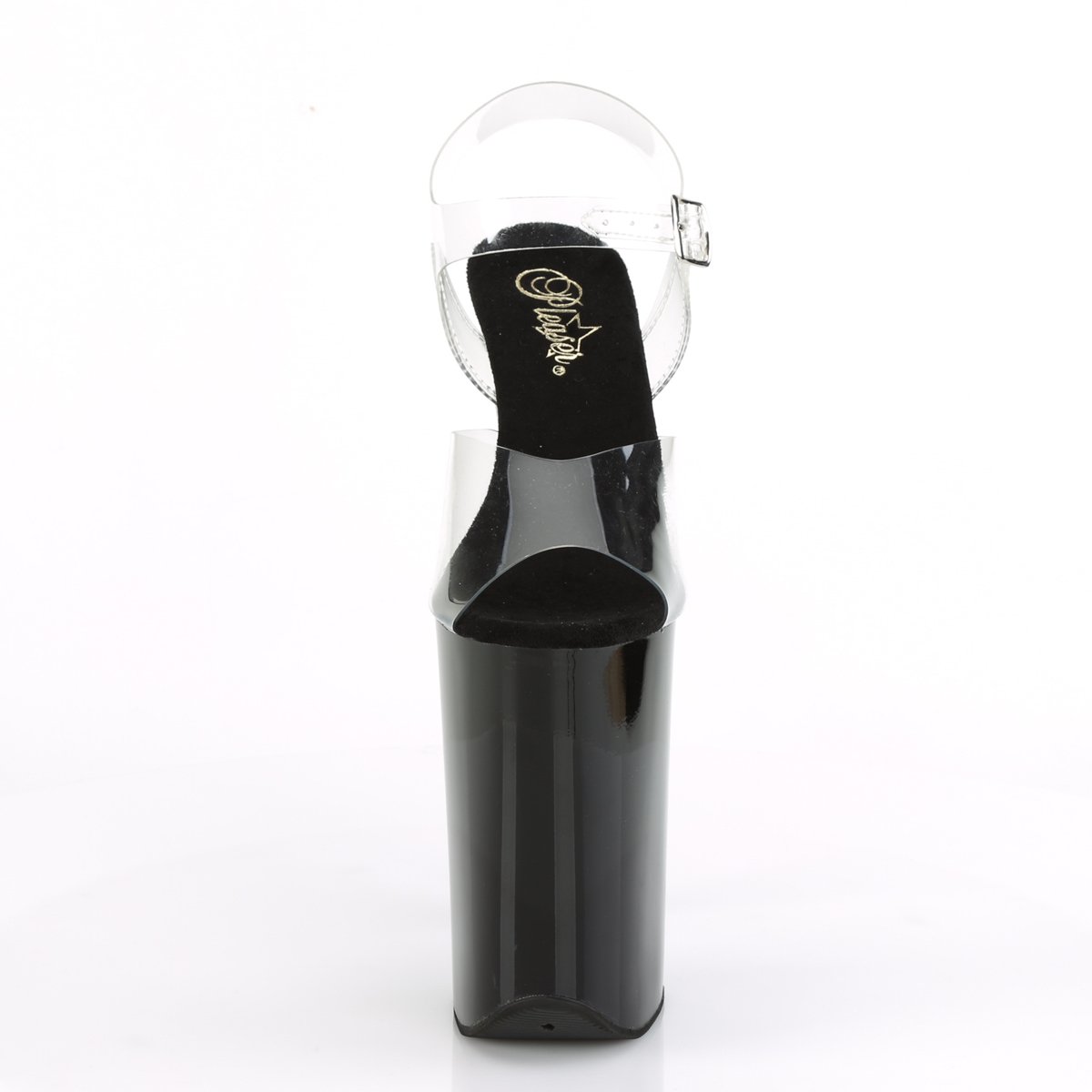 Ces sandales toutes transparentes vous aideront à obtenir un look sexy, sans sacrifier votre confort. Ils présentent une large lanière à orteils, deux sangles latérales qui supportent une lanière à la cheville avec fermeture latérale métallique, des talons transparents assortis de 9 pouces hauts et une plateforme transparente avant de 5,25 pouces de hauteur