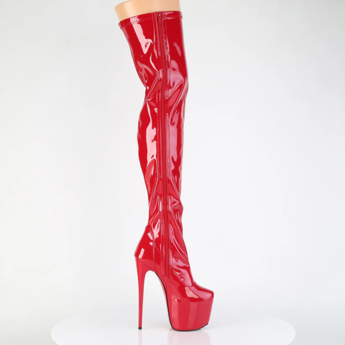 Cette botte montante est équipée d’un talon aiguillet de 7 » et d’une plateforme dissimulée de 3 » pour un look frappant. Avec une fermeture éclair latérale intérieure sur toute la longueur, la hauteur du manche atteint environ 23 1/2 pouces pour un style audacieux et confiant.