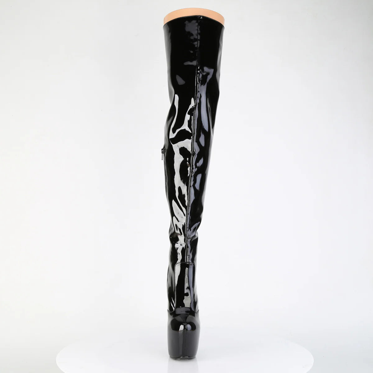 Cette élégante botte à talon aiguille de 7 po à hauteur de cuisse est dotée d’une plateforme dissimulée de 3 po et d’un détail de lacets fendus à l’arrière. Il a également une fermeture à glissière latérale intérieure de 1/2 et une hauteur de tige d’environ 24 pouces.