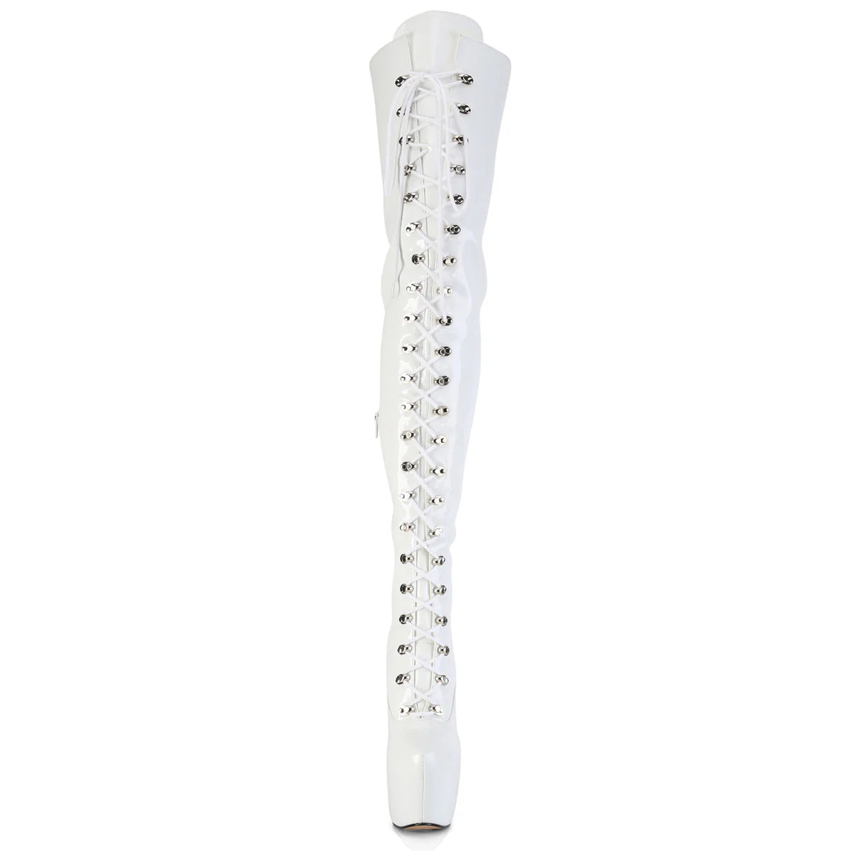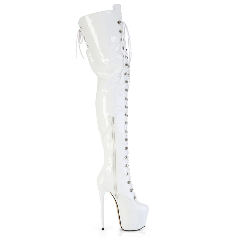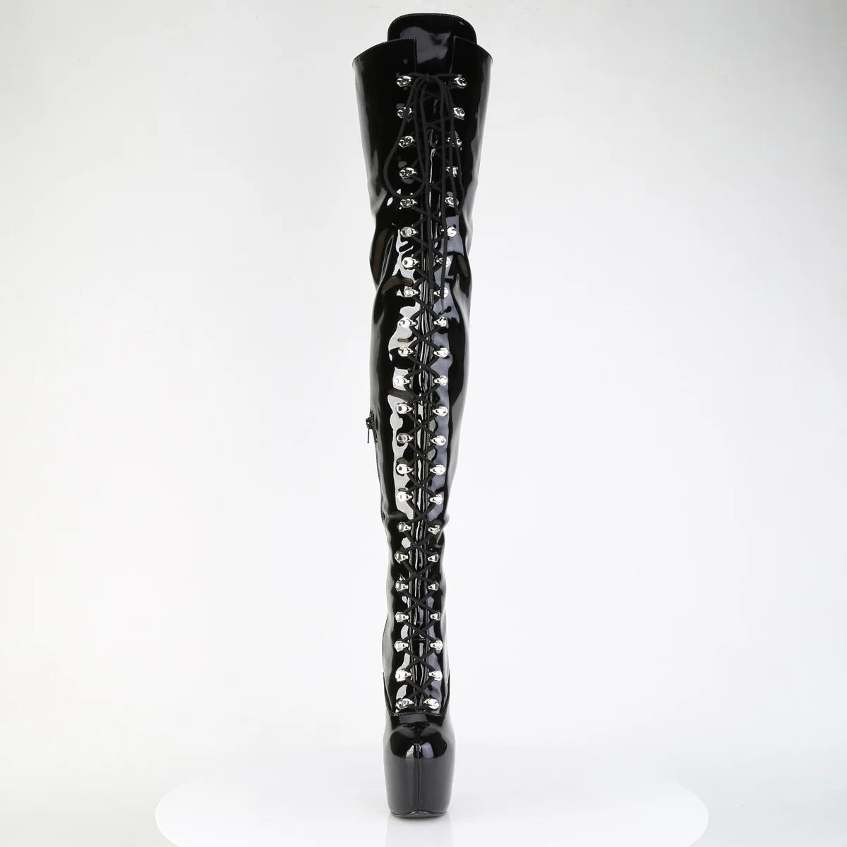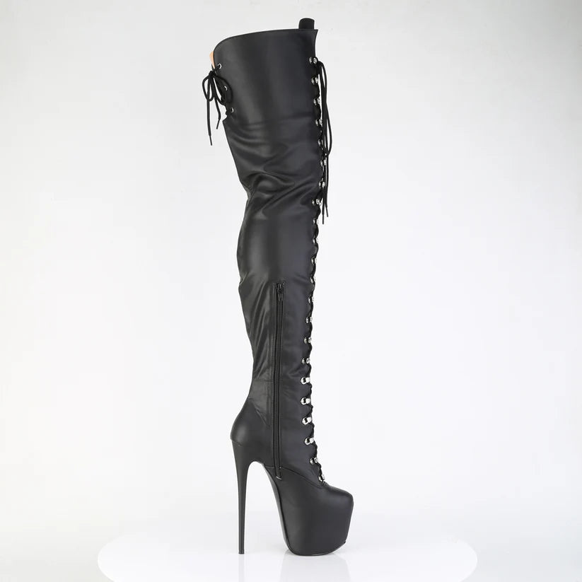 Cette botte à lacets à entrejambe possède un talon aiguille de 7 », une plateforme dissimulée de 3 » et un élégant détail de lacets fendu dans le dos. Il est entièrement doublé, avec des crochets rapides, une fermeture éclair intérieure latérale de 1/3, et une hauteur de tige d’environ 26 pouces.