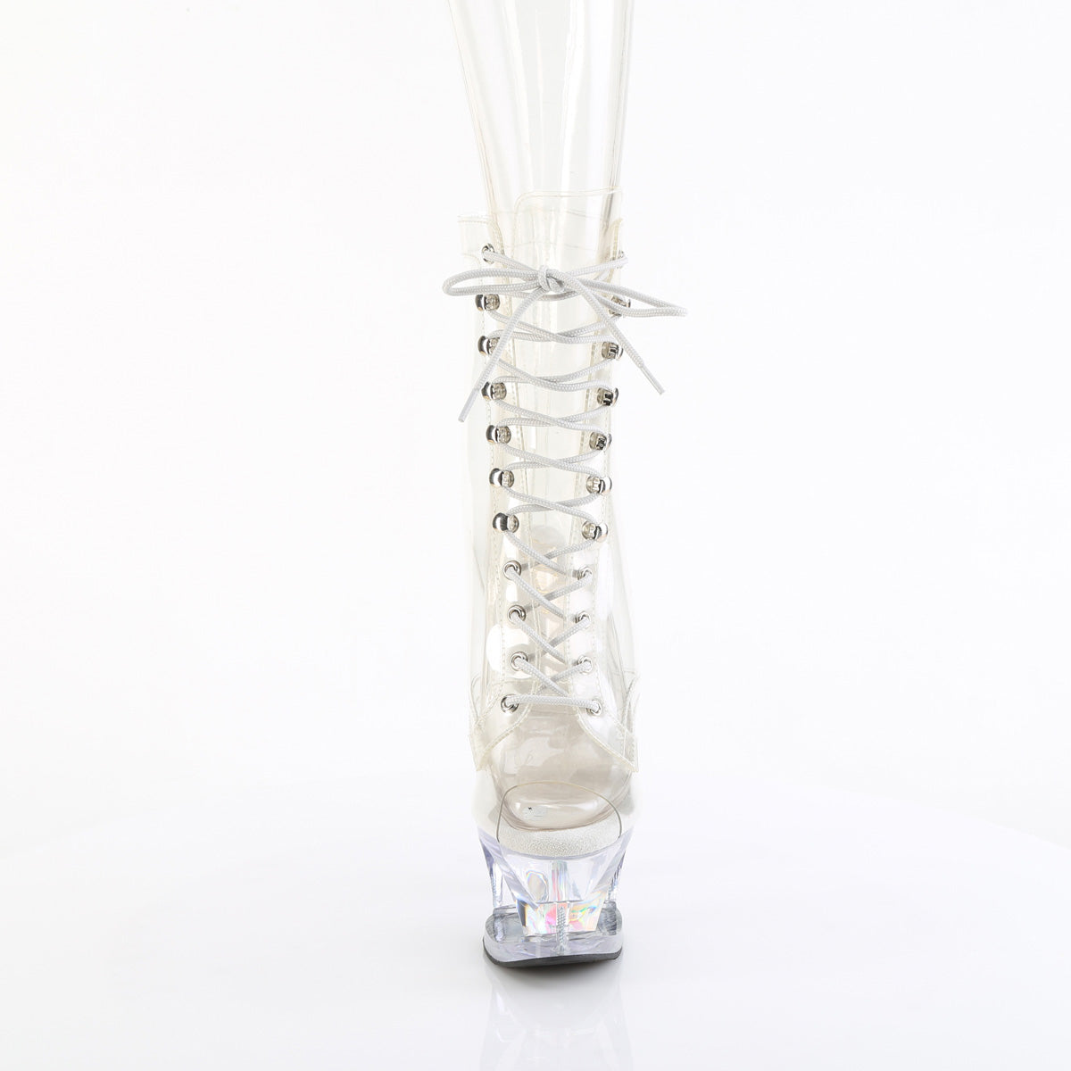 Montrez sous les projecteurs avec ces bottines à lacets captivants. Avec un talon de 7 » et une plateforme découpée de 2 3/4 », ils offrent à la fois hauteur et attrait, tandis que les magnifiques prismes en cristal en forme de goutte d’eau irisés de 50 mm AB dans la découpe de la plateforme ajoutent une touche de glamour. Avec une fermeture éclair latérale intérieure, ces bottes sont le parfait mélange de style et de commodité.