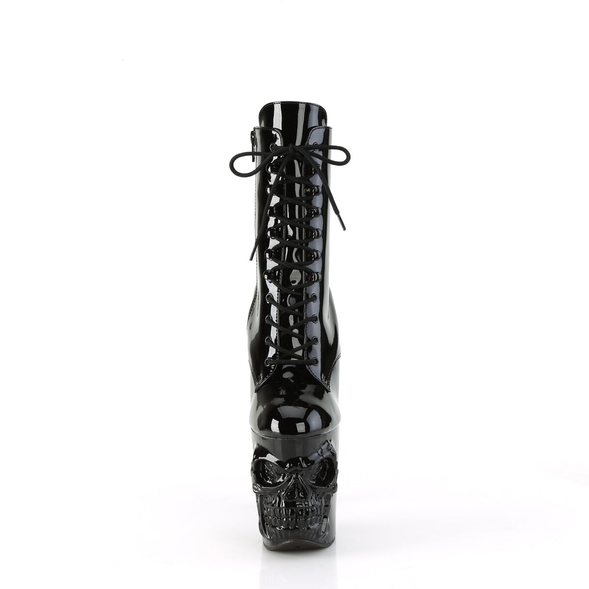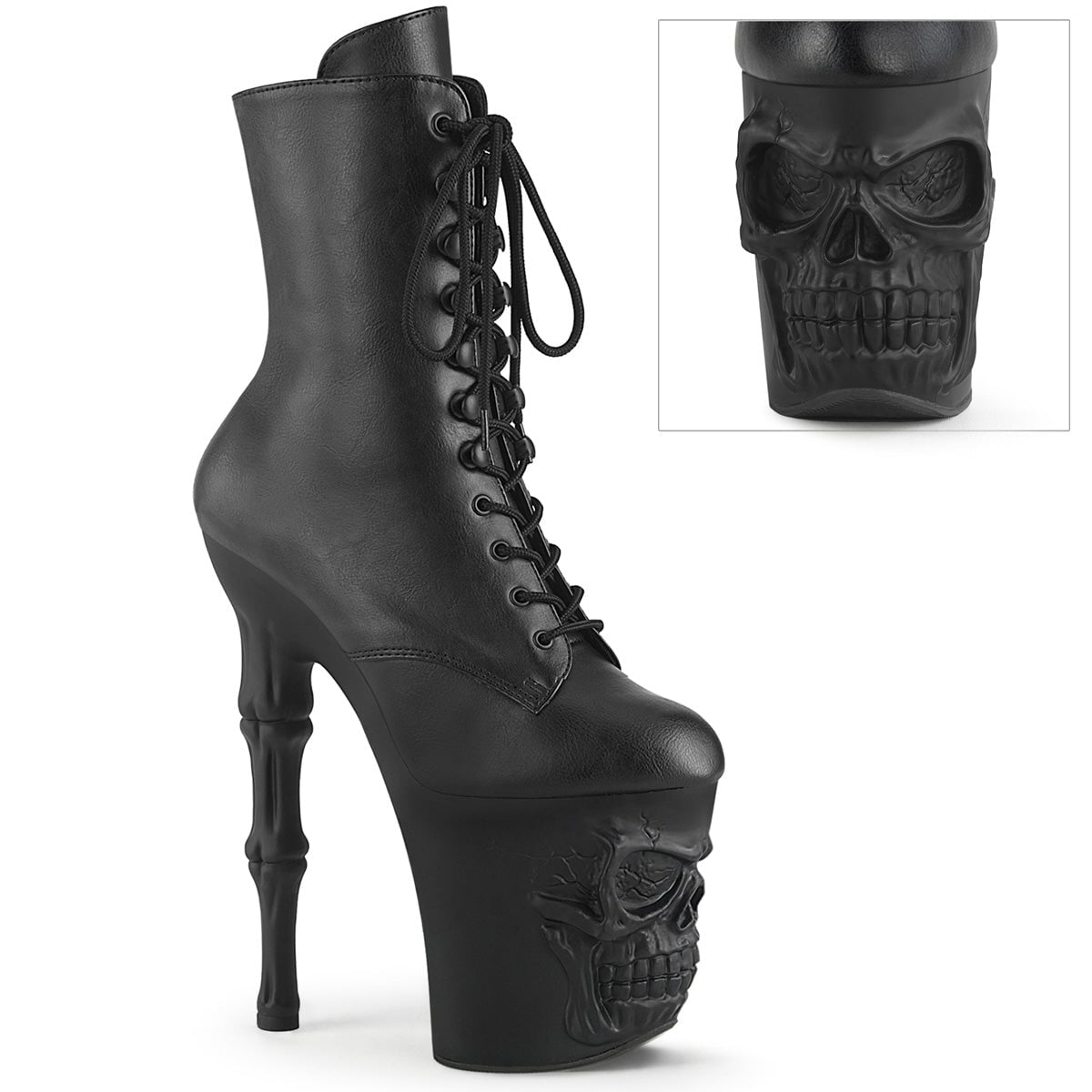 Mystérieux gothique! Talon en os des doigts de 8 » (200 mm), bottines à plateforme à lacets sculptées de 4 » (100 mm) sur le devant, fermeture à glissière latérale intérieure.