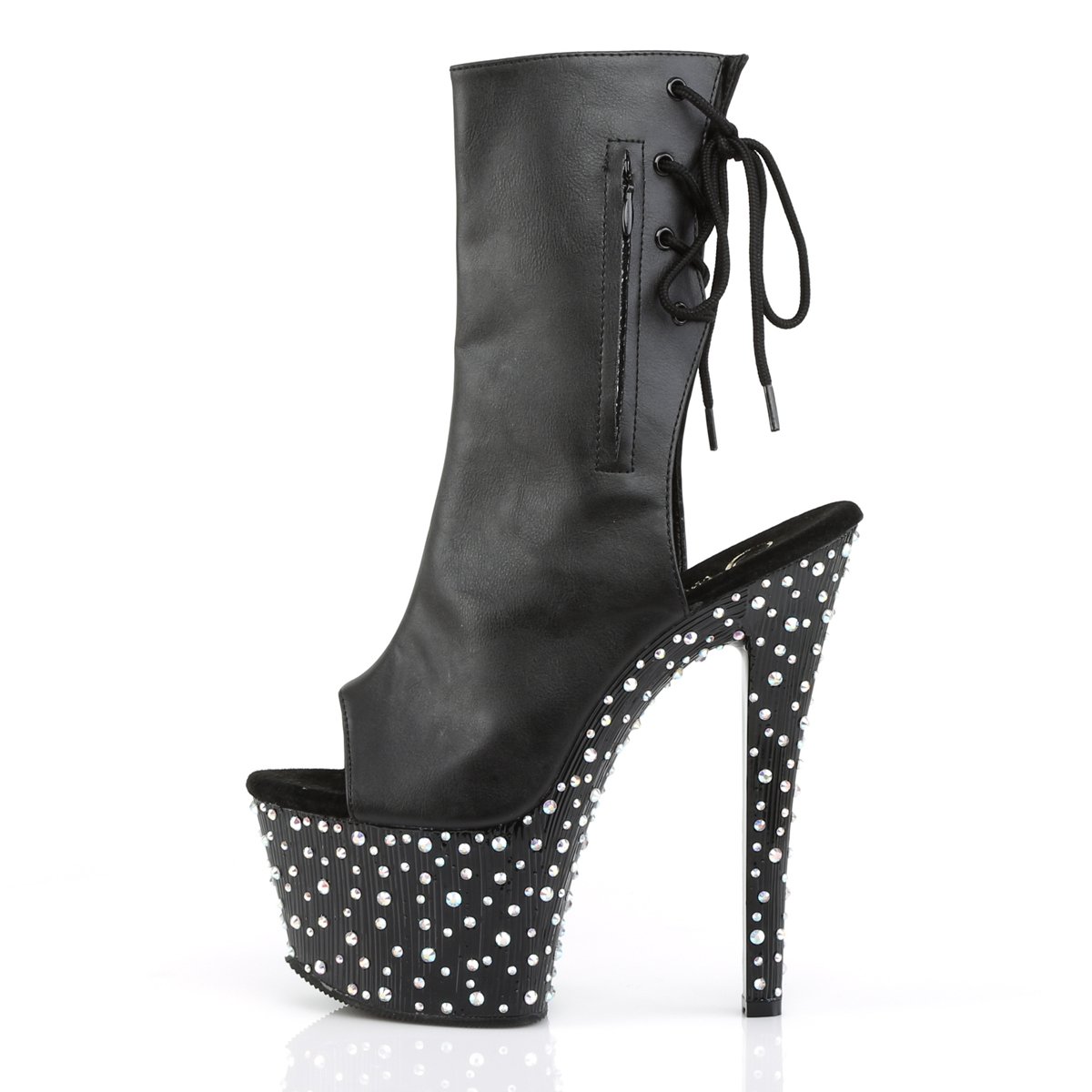 Talon de 7 » (18 cm), 2 3/4 » (7 cm), bottinière arrière à lacets ouverts avec fermeture éclair cachée avec des RS multi-tailles incrustées sur toute la semelle, fermeture éclair intérieure