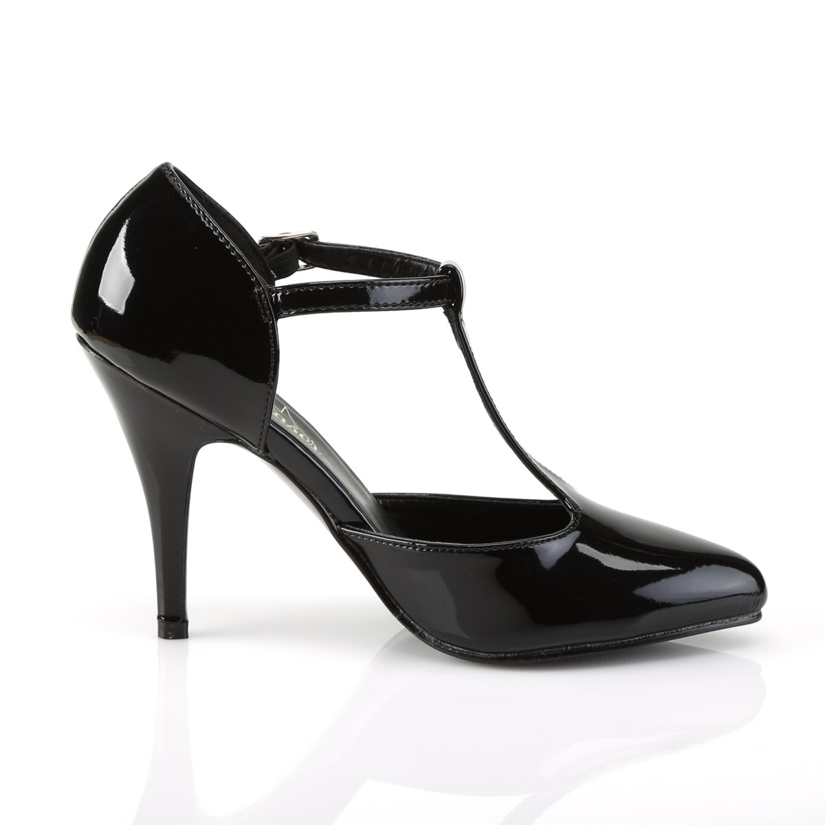 Talon de style D’Orsay, côtés ouverts et bout pointu. Une sangle en T réglable décore le cou-de-pied et est fermée sur le côté par une boucle métallique. La semelle plate avant est contrastée par les élégants talons hauts de 4 pouces (10 cm) en noir brillant assorti. Avec un design classique et une couleur très polyvalente, ces chaussures s’adaptent à une variété de styles et de tenues.