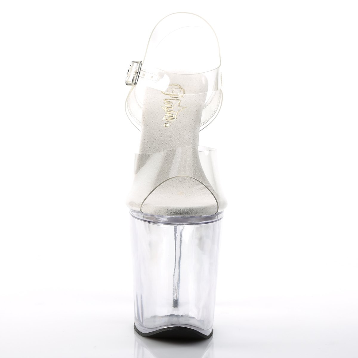 Sois Xtreme in Pleasertalon plateforme. Cette chaussure séduisante est dotée d’une tige en vinyle transparent avec une lanière à la cheville bouclée, posée sur une plateforme de haute altitude et un talon totalement imposant. Une bande d’orteils transparente et coquette et une sangle à la cheville donnent une touche moderne à ce talon haut, qui élèvera votre silhouette pour le mieux. Cette superbe sandale à bretelles de cheville a un talon aiguille fabuleux avec une relevée de plateforme avant de 4 pouces.
