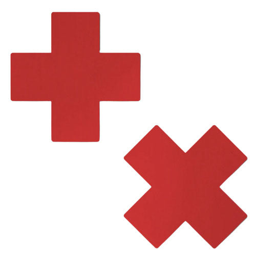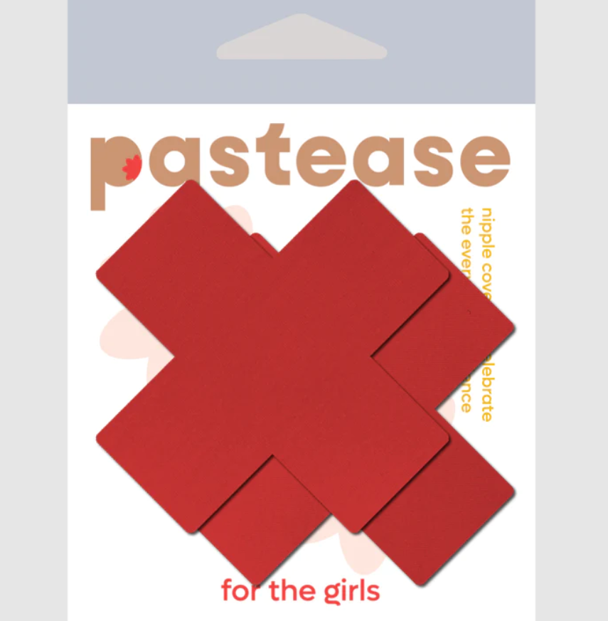 Plus X : Les pâtés à tétons Red Cross de Pastease® sont fabriqués à la main aux États-Unis en un matériau en similicuir durable et brillant, qui forme des courbes et résiste aux plis sur les mamelons durcis.