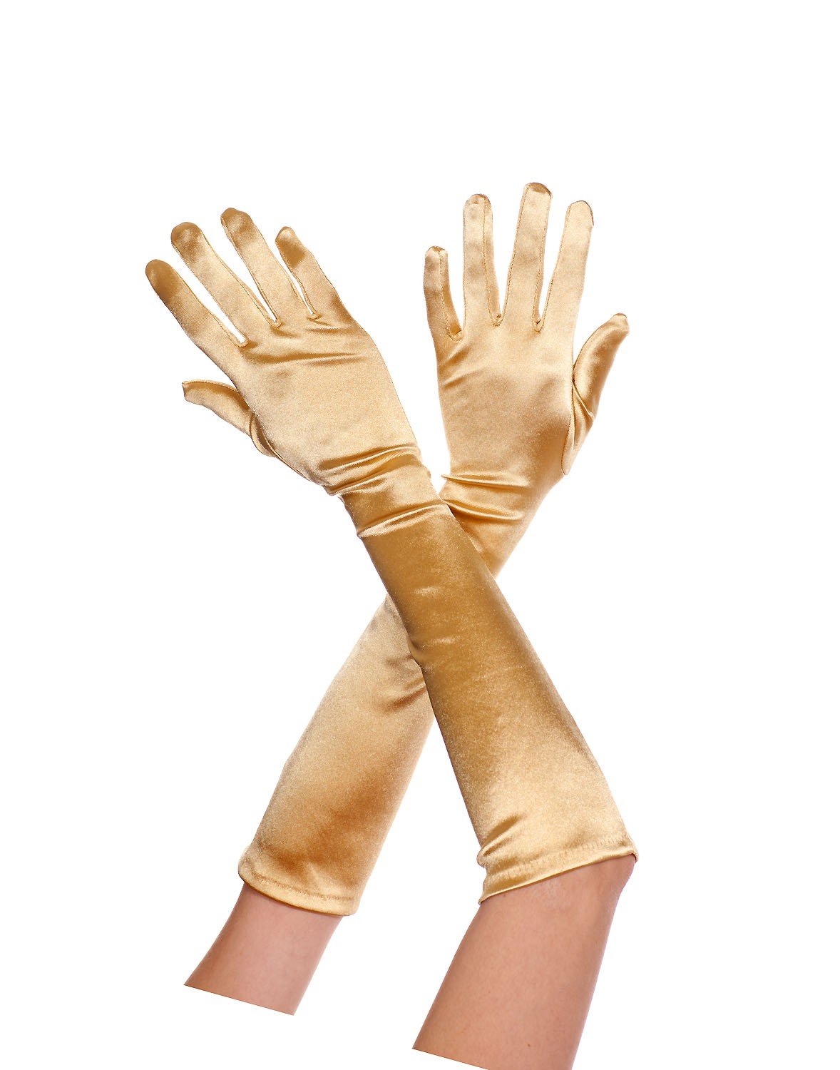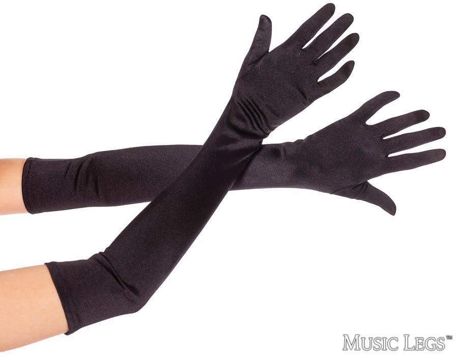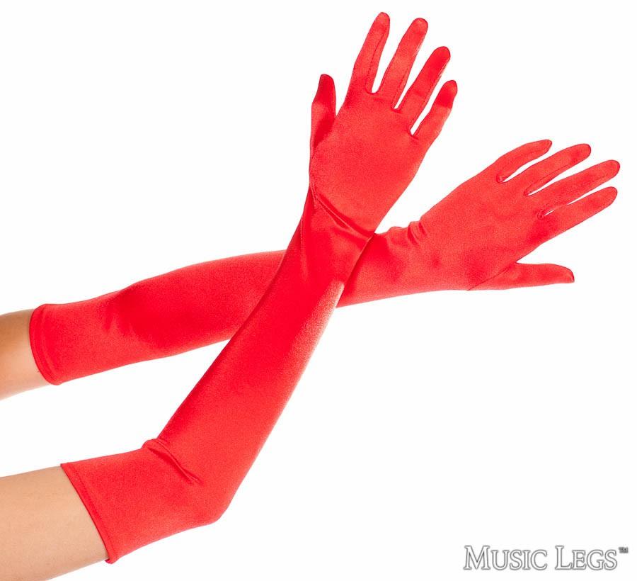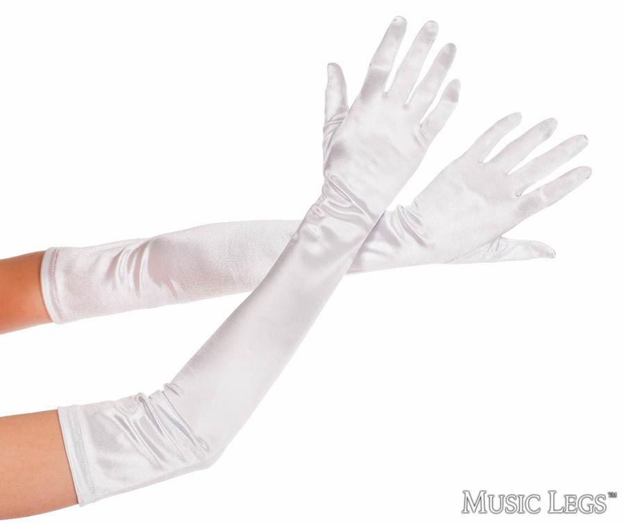 Des gants en satin extra longs qui vont au-dessus du coude.