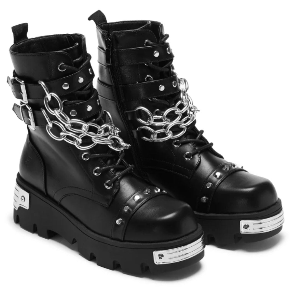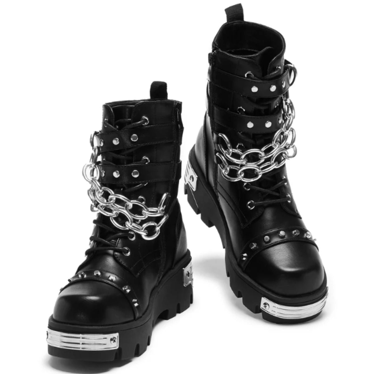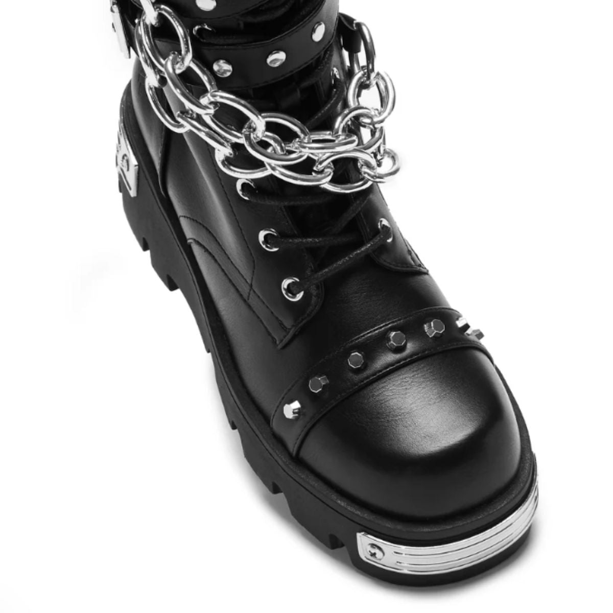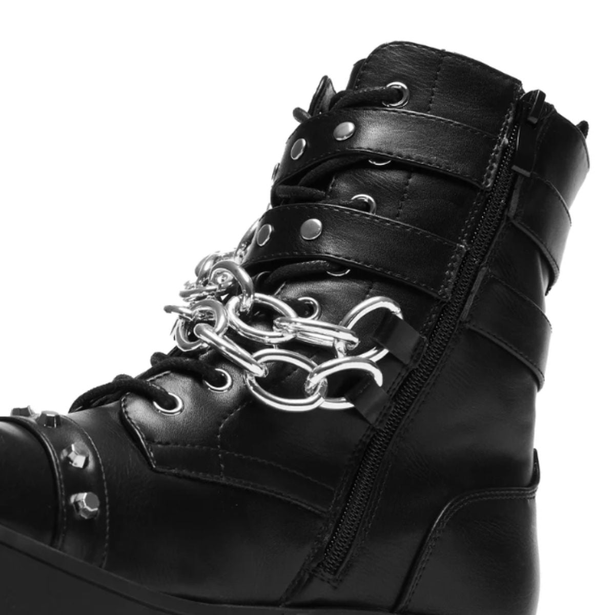 Shackled Shadows Heavy Duty Chain Biker Boots - Black