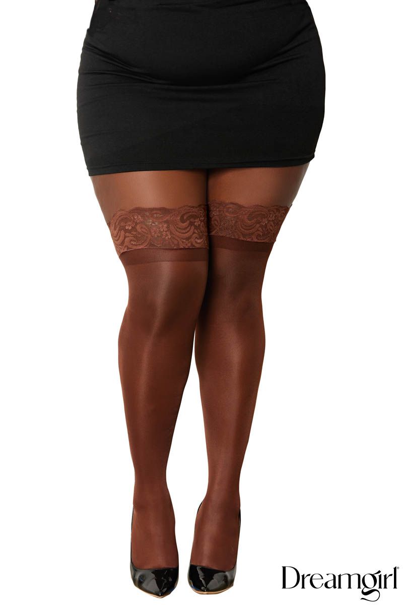 Sheer Thigh High Stockings With Lace Top