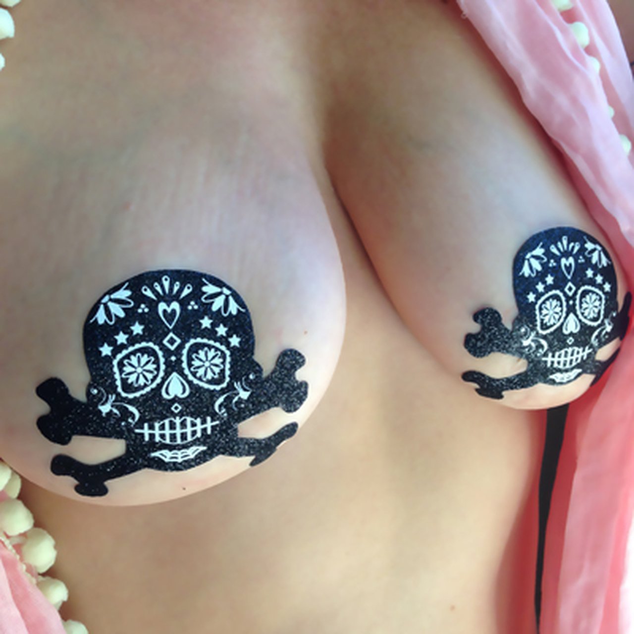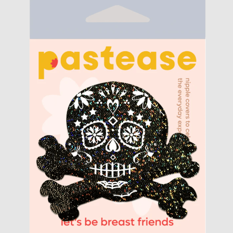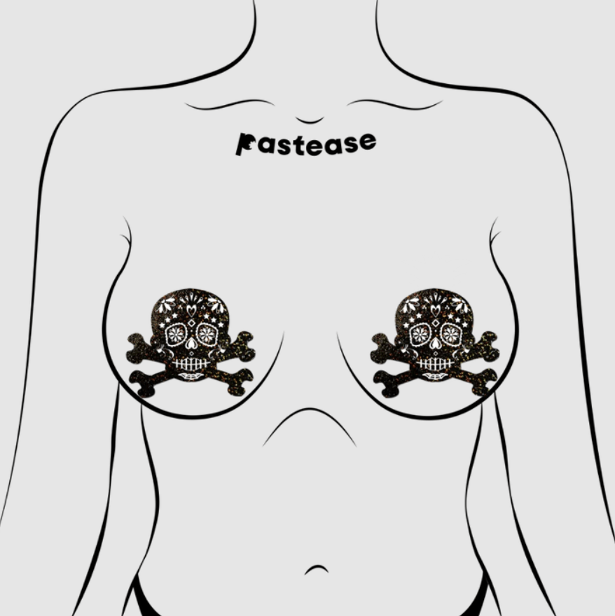 Skull: Black Glitter Candy Skull & Crossbones Nipple Pasties