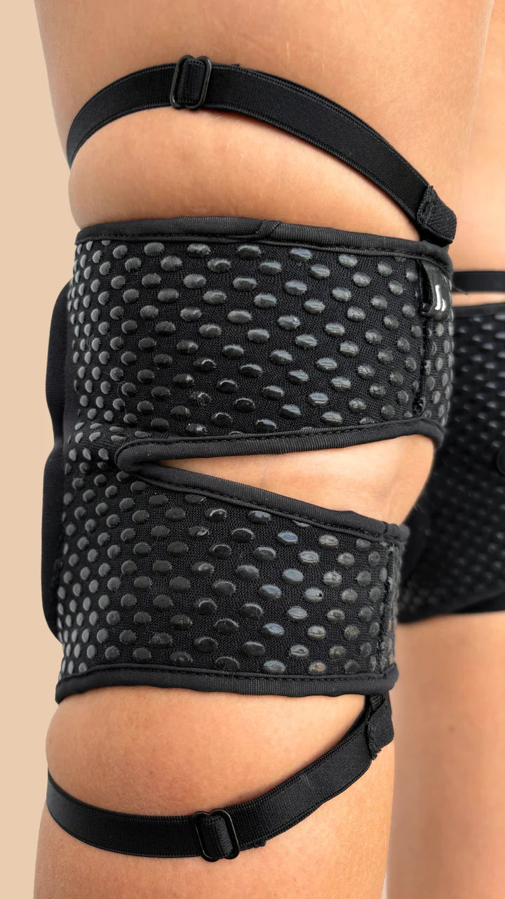 Les genouillères en silicone collant sont là pour rehausser votre vie pole Garde-robe! Nos genouillères, les plus vendues et les plus appréciées, ont été améliorées, transformées avec des jarretières ajustables pour que vous puissiez accessoiriser et protéger en même temps.