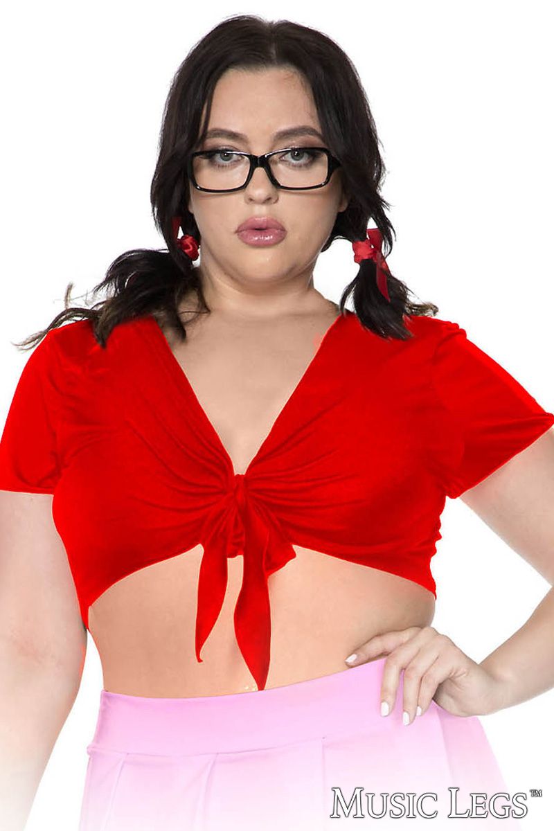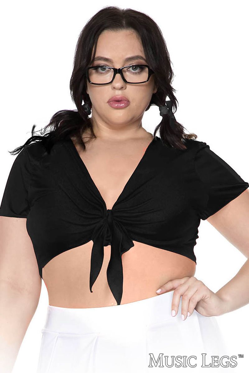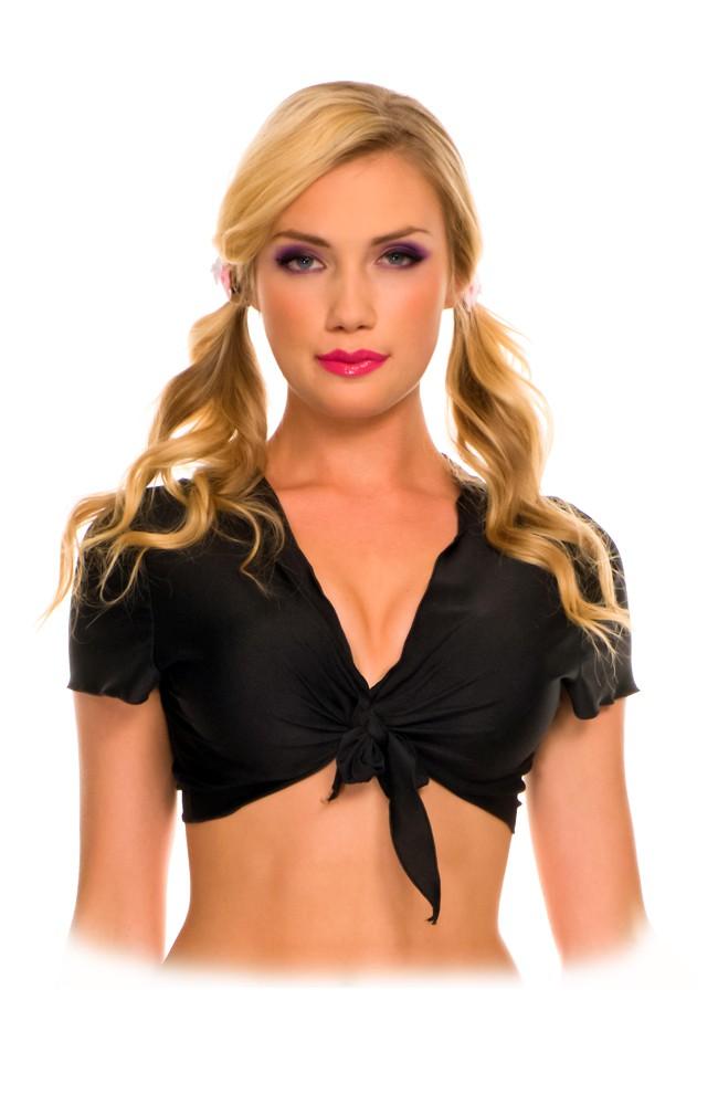 Chemise à cravate, tricot élastique, encolure plongeante avec manches courtes