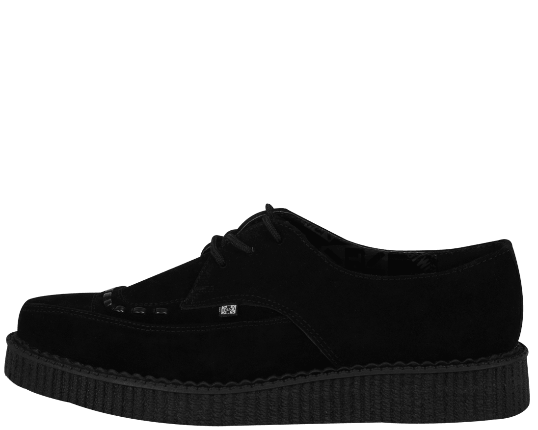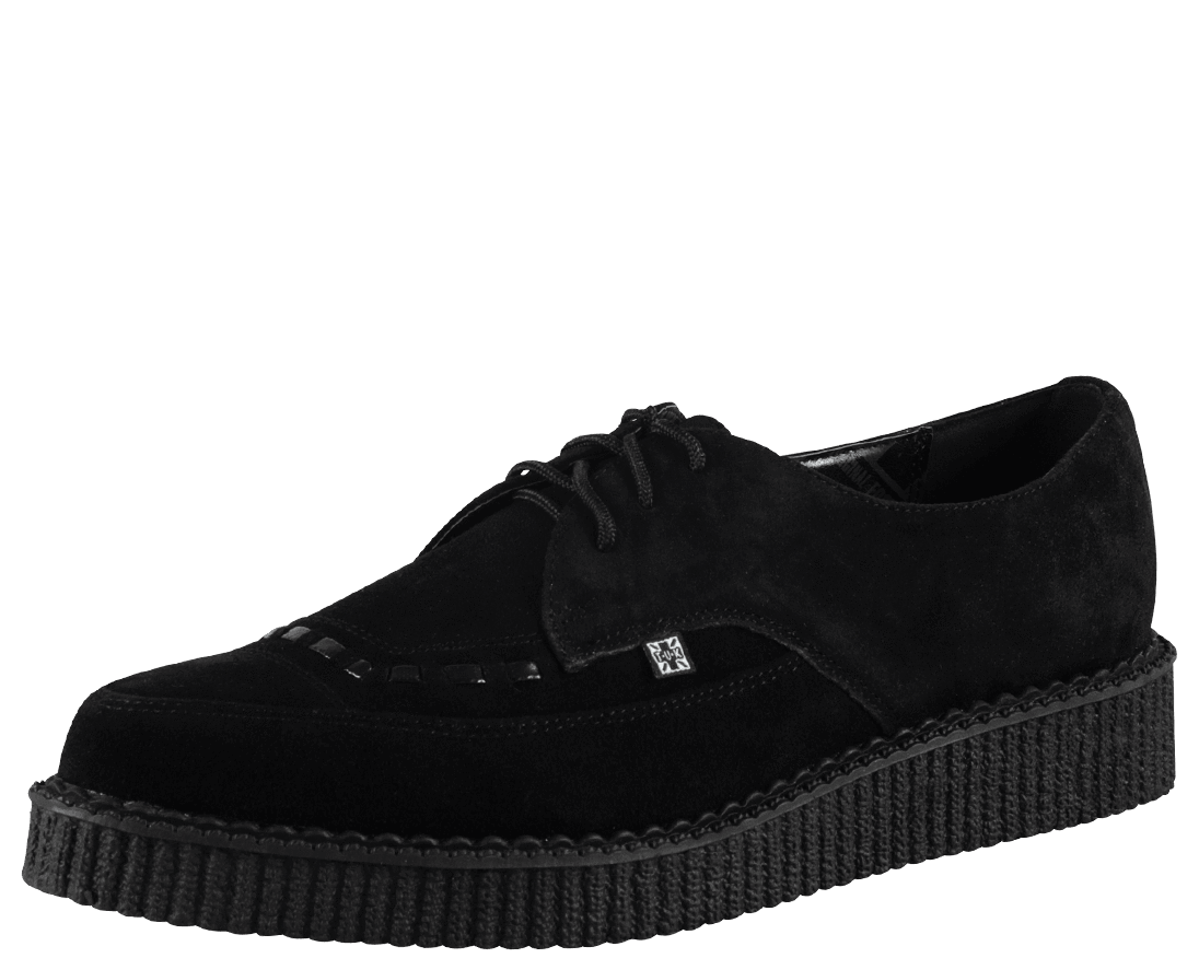 Allez droit au but avec ces creepers à orteils pointus originaux de T.U.K.! La tige est en suède vache noire et présente un entrelacs noir sur le vamp. Ferme les lacets. La semelle T.U.K. Pointed Creeper mesure environ 1 1/4 pouces de haut. Cette chaussure a un devant étroit, pense à une pointure au-dessus pour les pieds plus larges. Les T.U.K. Creepers sont vendus en tailles pour hommes américains. C’est un style UNISEXE. Si vous souhaitez acheter une taille pour femmes, veuillez soustraire 2 tailles pour les convertir en tailles pour hommes. Par exemple, si vous souhaitez commander une taille 7 pour femmes, veuillez commander une taille 5.