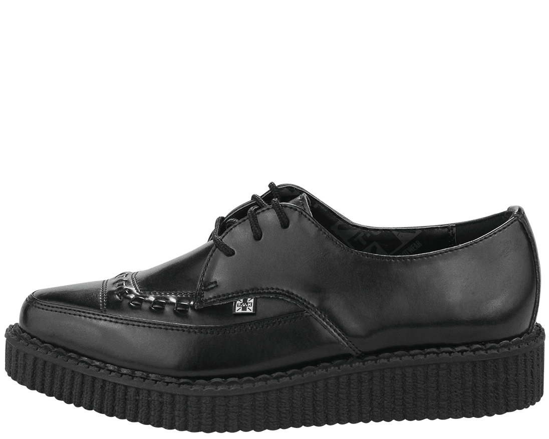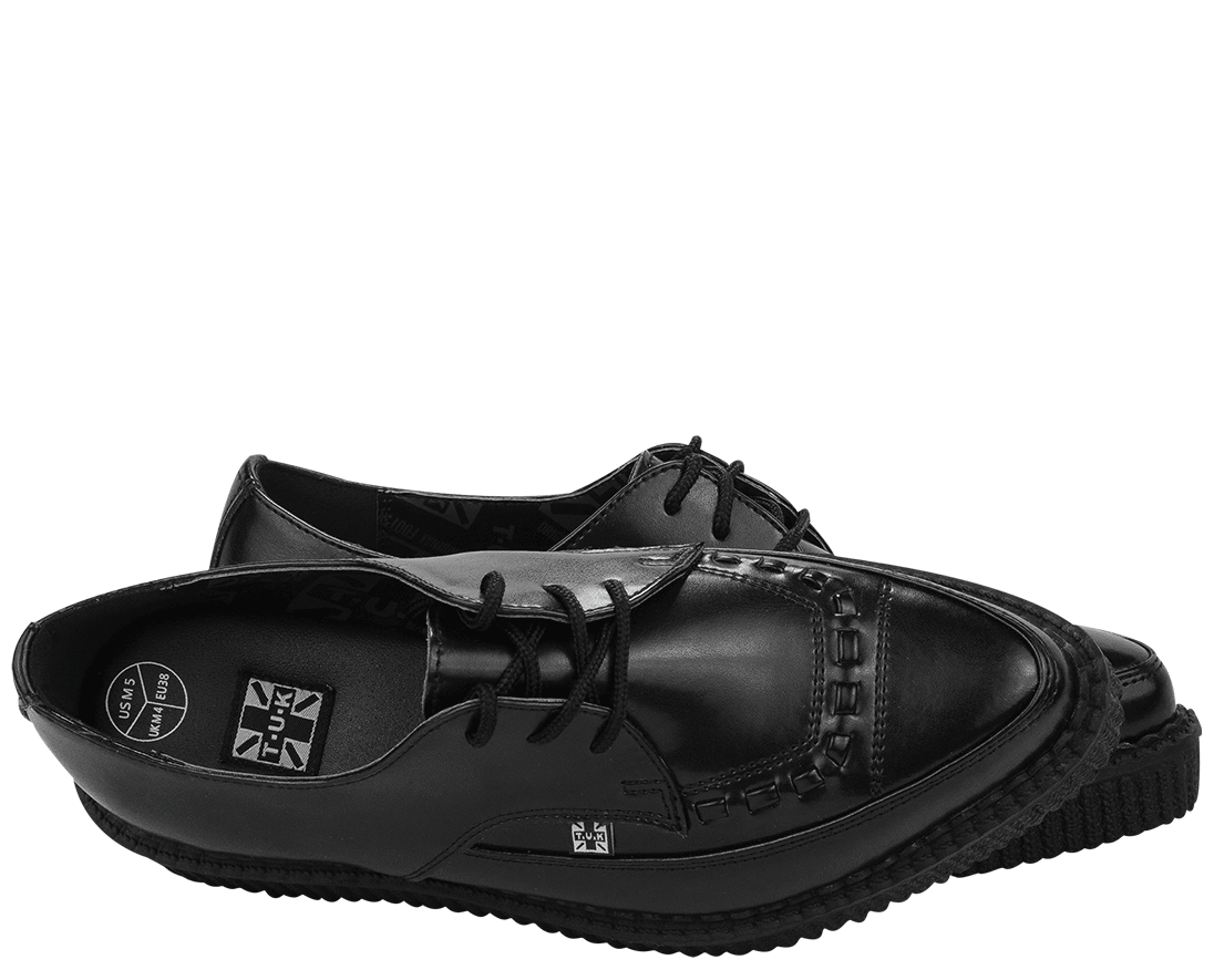 Sortez avec style avec le dernier ajout à la famille T.U.K. --- nos lianes pointues à lacets en cuir noir! Parfaites pour s’habiller, ces chaussures sont en cuir noir, détails en dentelle noire et bout pointu. La semelle rampante mesure environ 1,25 pouce. Cette chaussure a un devant étroit, considérez une taille au-dessus pour les pieds plus larges. Les lianes T.U.K. sont vendues dans les tailles américaines pour hommes. Il s’agit d’un style UNISEXE. Si vous souhaitez acheter une taille pour femmes, veuillez soustraire 2 tailles pour les convertir en hommes. Par exemple, si vous souhaitez commander une taille 7 pour femmes, veuillez commander une taille 5.
