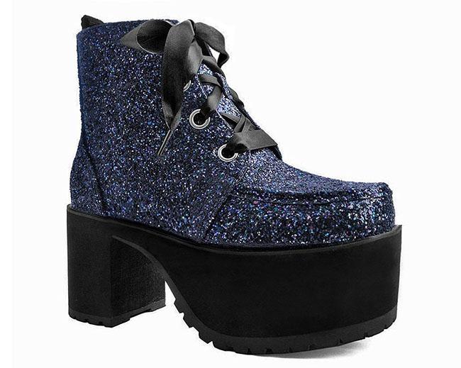 Allez-y un peu plus loin dans votre jeu de chaussures et ne le regrettez pas. Nous avons pris notre botte préférée à saignement de nez et l’avons décorée d’une tige noire scintillante et stylée, complétée par des lacets en satin noir pour une touche finale. Doté d’un talon plateforme massif de 3,5'Äù pour une levée robuste et surélevée qui va vraiment booster votre style! Végane amical.