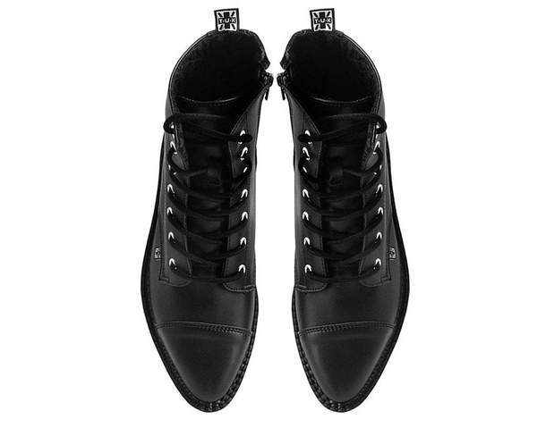Frappez-le dans un style urbain pointu avec ces bottes rampantes tueuses. Comprend une tige élégante entièrement noire en Végane Matériau TUKskin™ de haute qualité - similicuir synthétique polissable, à la fois doux et respirant. Ces bottillons à bout pointu ont un détail de lacets à 7 œillets et une hauteur de semelle plateforme qui mesure 1 1/4 » au talon et 3/4 » à l’avant. A des semelles intérieures amovibles en mousse à mémoire de forme pour plus de confort et une fermeture à glissière intérieure pour un enfilage et un retrait faciles.