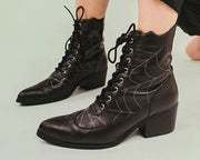 TUK-T2312L Black Victorian 8-Eye Spiderweb Pointed Anarchic Heel