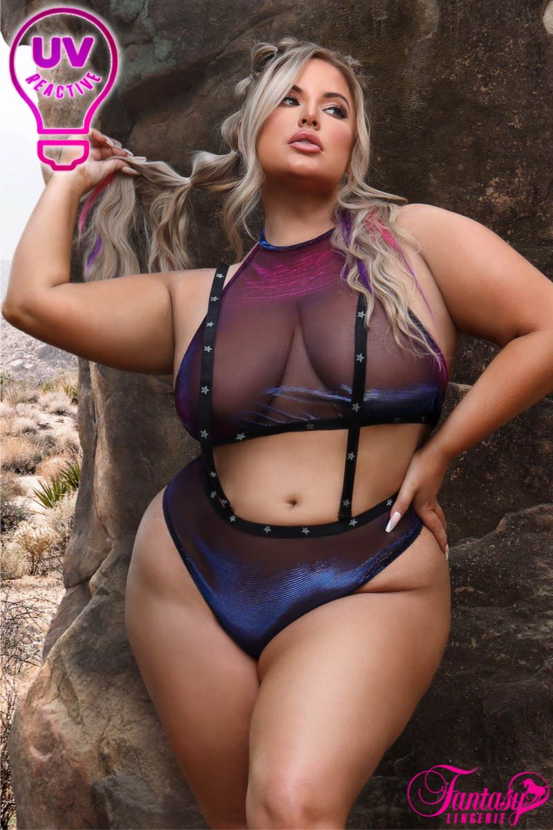 Brillez comme une étoile avec ce superbe ensemble en maille irisée et culottes, doté d’une fermeture à col attaché et d’un motif d’étoile argentée sur la bretelle élastique sous la poitrine. La culotte assortie arbore un motif en maille iridescente avec un motif d’étoiles argentées sur la ceinture élastique et des bretelles ajustables à motif d’étoiles avec des clips en forme d’étoile dans le dos. Parfait pour ceux qui recherchent un ajout unique et ludique à leur collection de lingerie, cet ensemble vous fera sentir confiant et stylé.