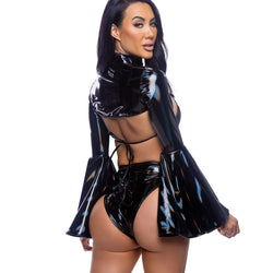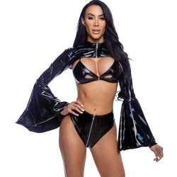 Bell Sleeve Vinyl Shrug with Zipper Closure