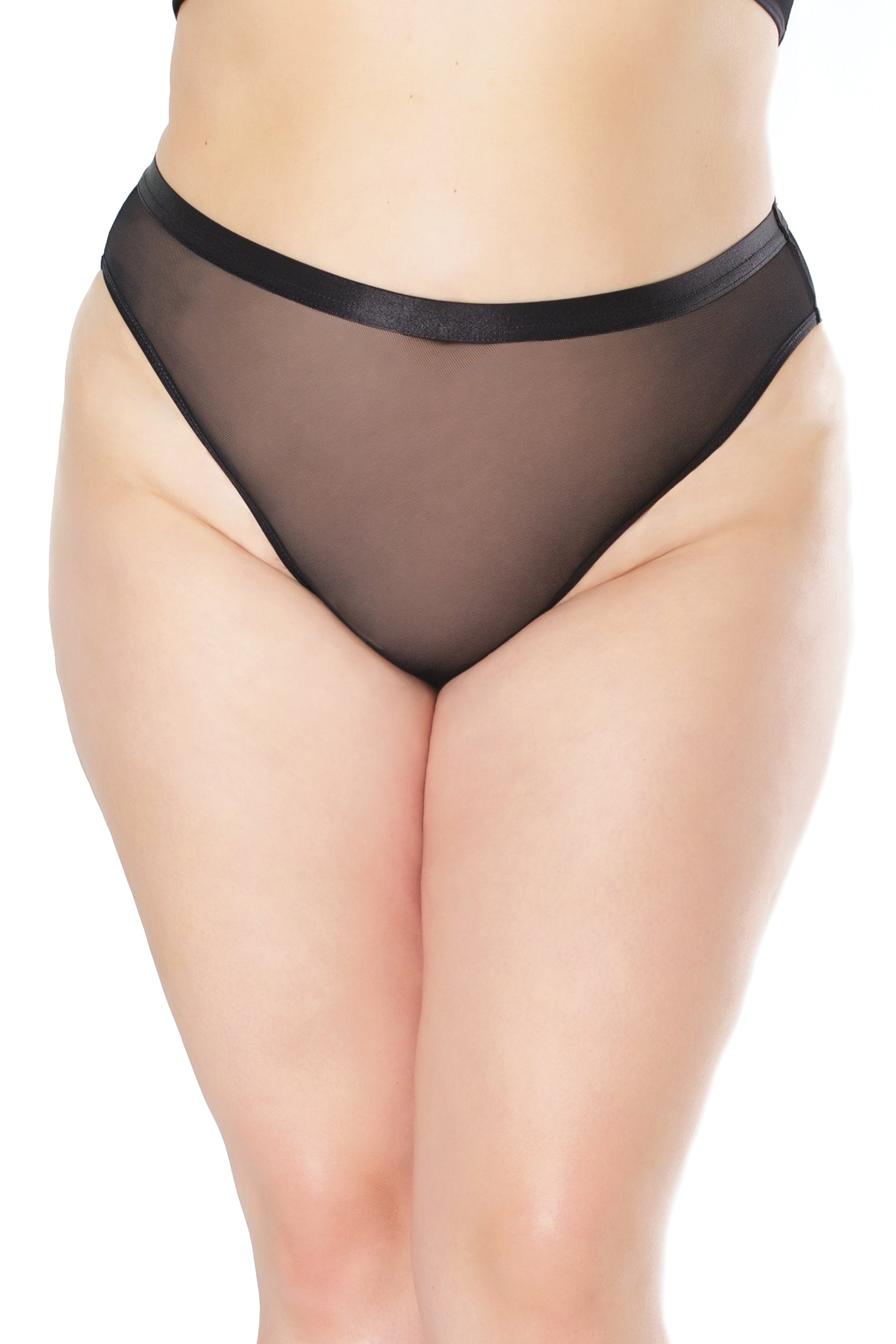 Stretch mesh elasticized natural waist panty with hidden crotchless design. Shown With: Bralette (22135)