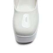 Darkbloom White Patent Platform Heels